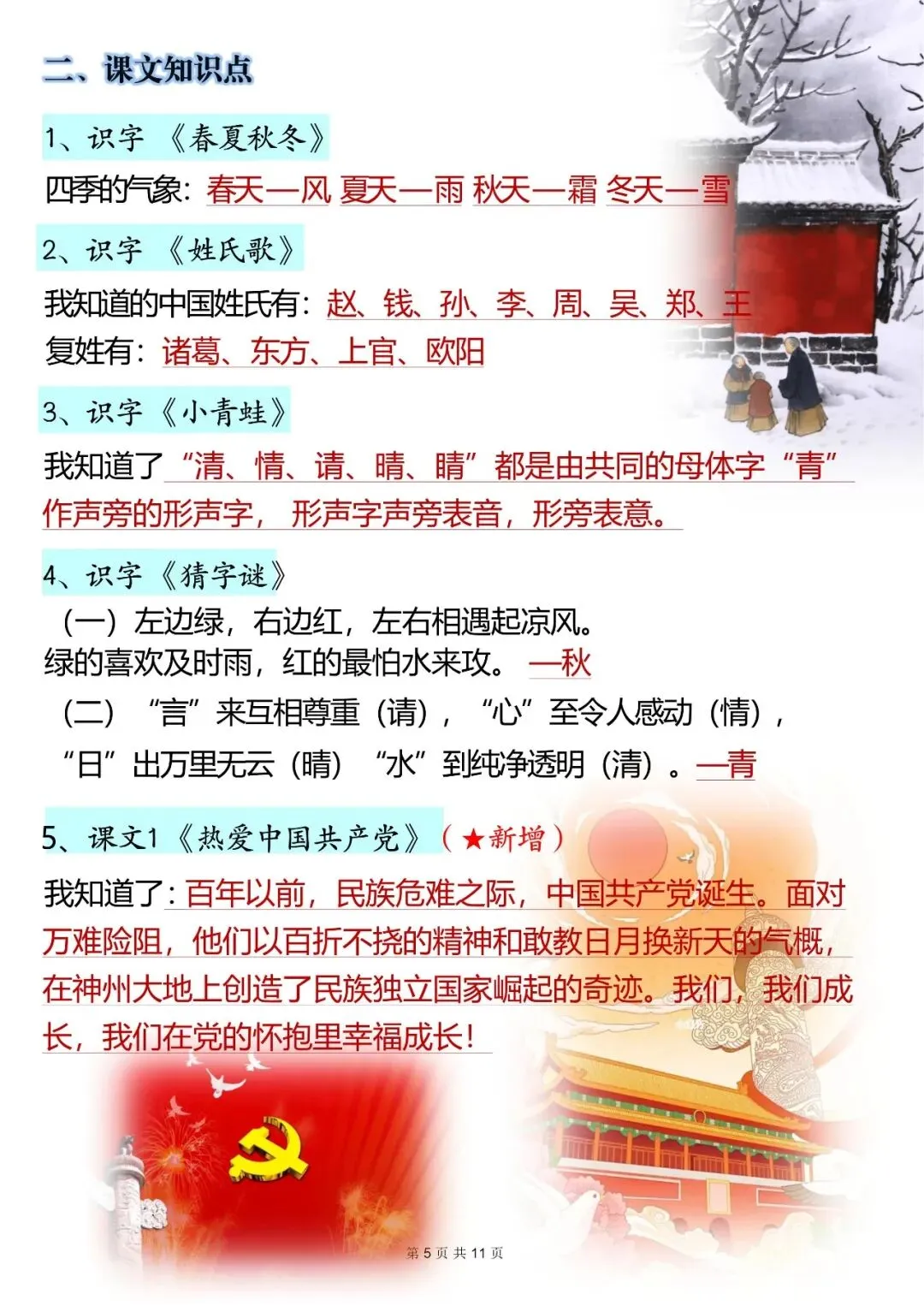 一年级下册语文全册必背知识点汇总(预习复习必背重点梳理).PDF (10页)
