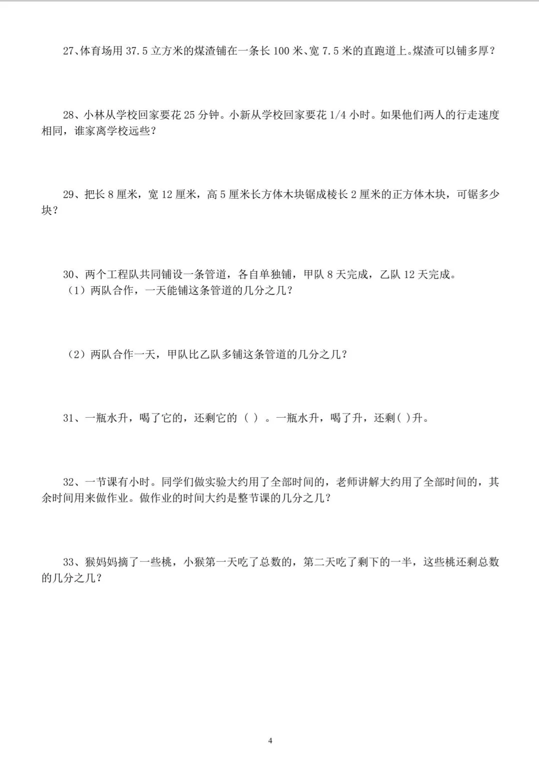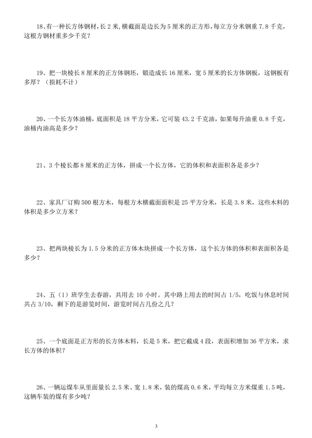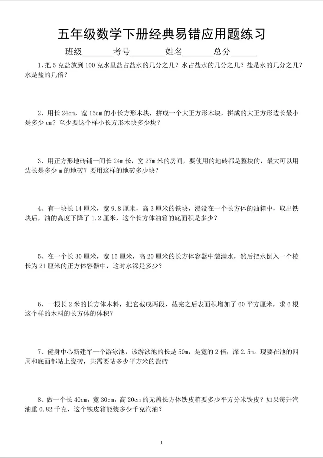 五年级下册数学经典易错题练习(电子版可打印有答案)