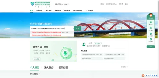 一、通过电脑浏览器搜索内蒙古政务服务网并点击进入