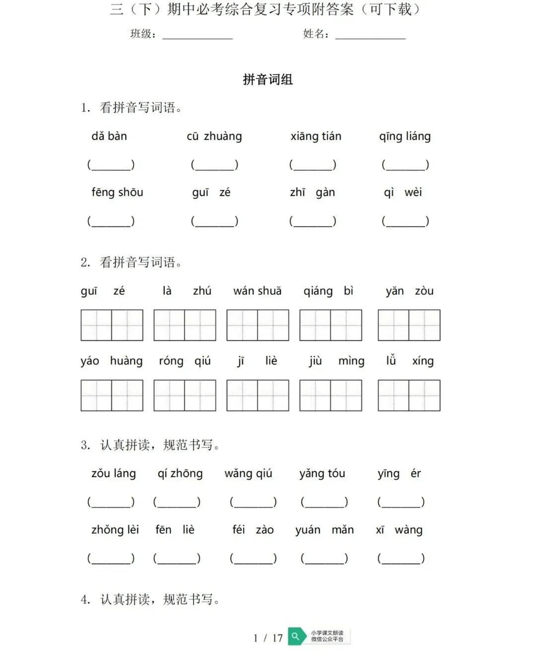 夜雨聆风 > > 办公文件 > 三年级下册期中必考综合复习专项附答案(免费下载)