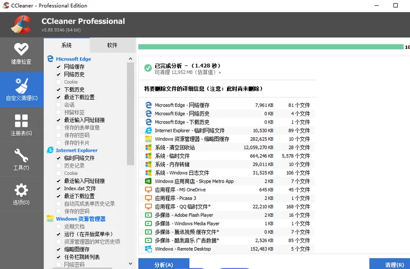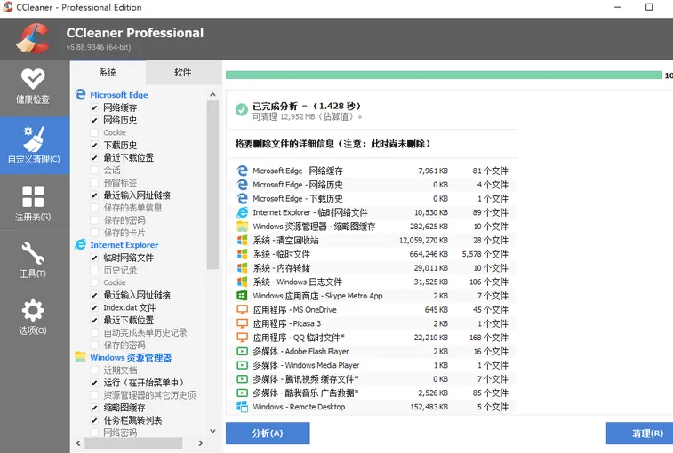 透明可预览:先 “分析” 再 “清理”,每一项都能看明细,确认后再删。