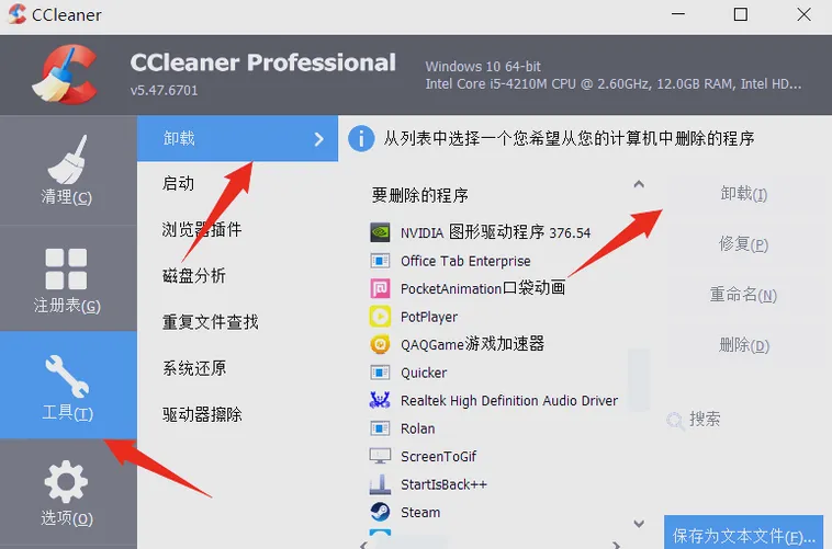 软件卸载:比系统自带更彻底,能删顽固软件与 UWP 应用。