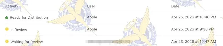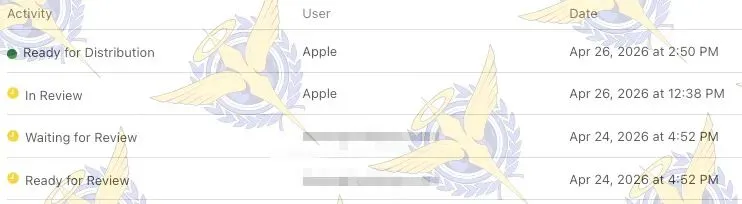 · 4月26日 进入 “In Review”,当天直接变为 “Ready for Distribution”