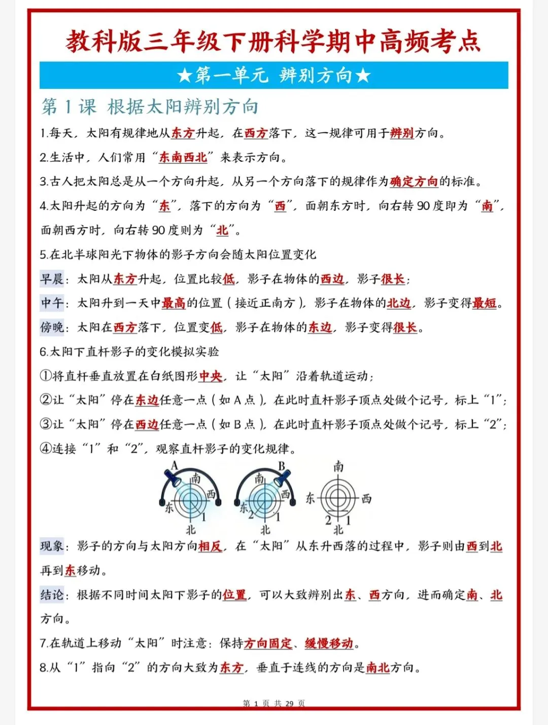 教科版三年级下册科学期中高频考点‖电子版可下载打印