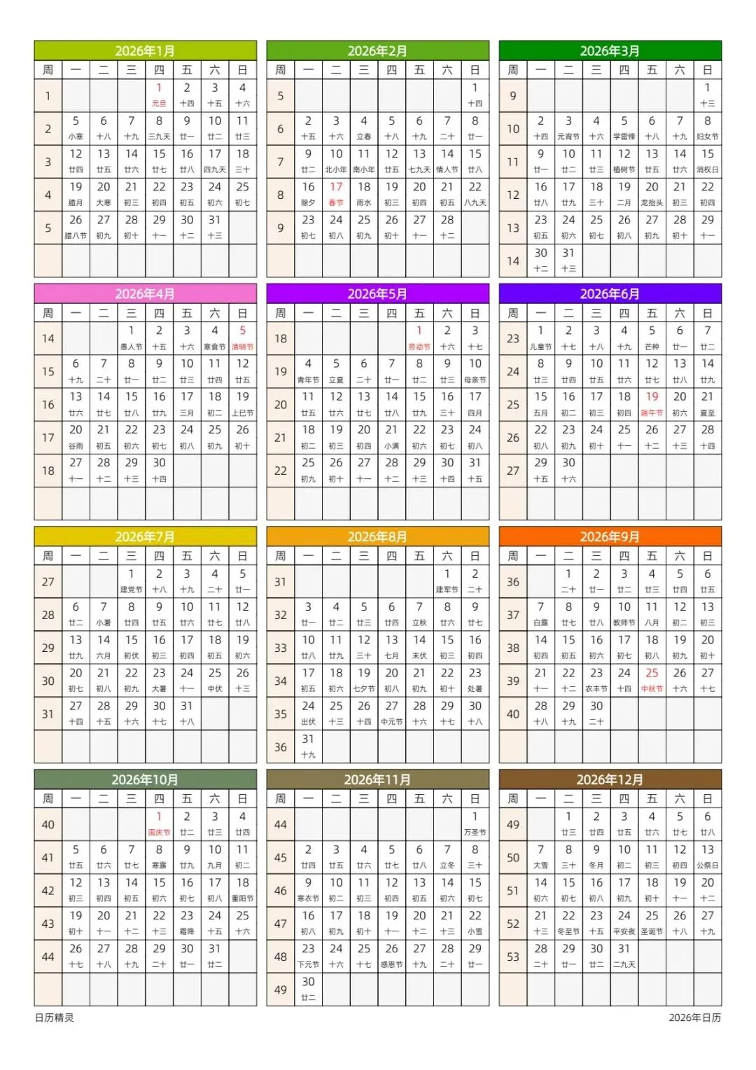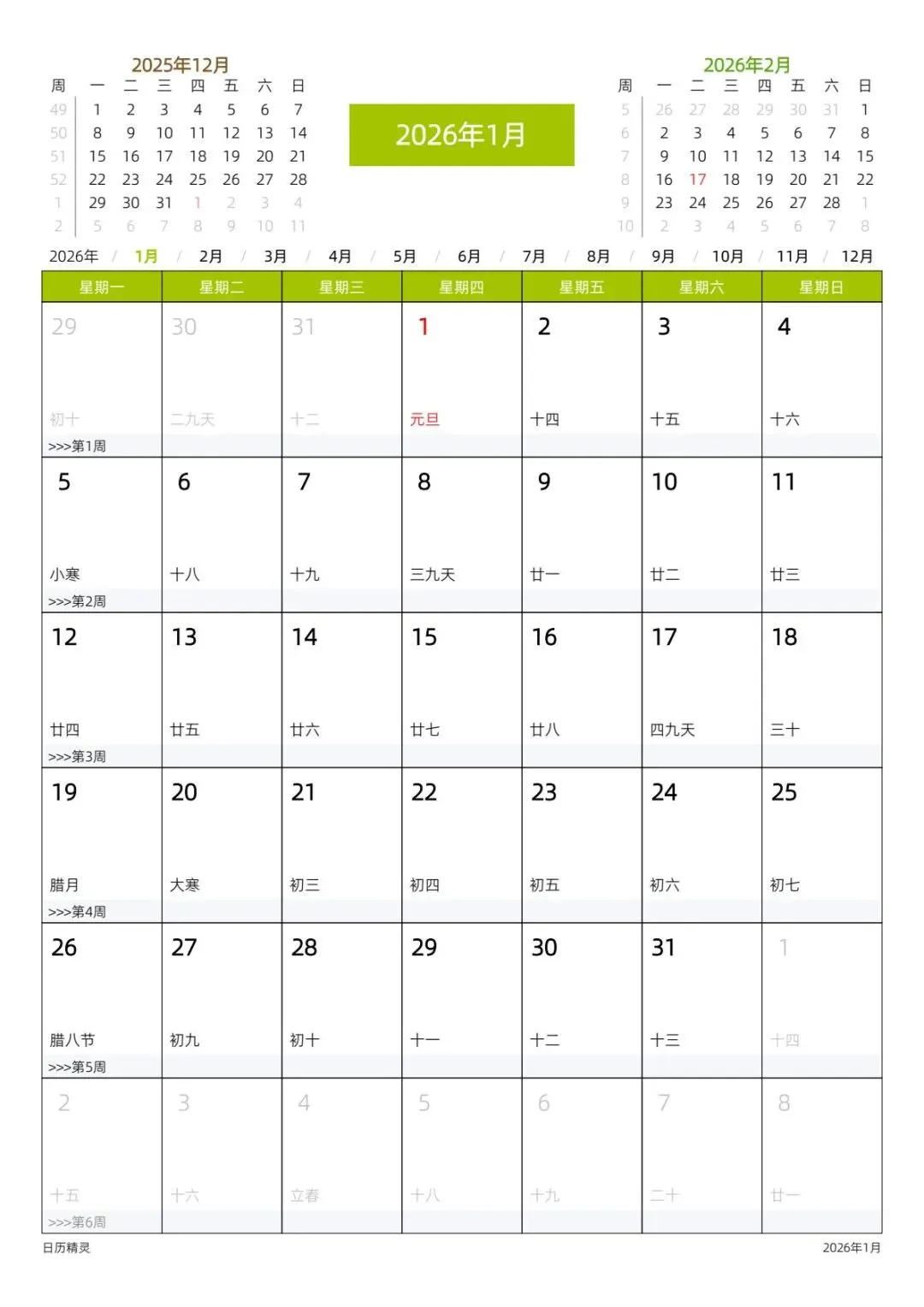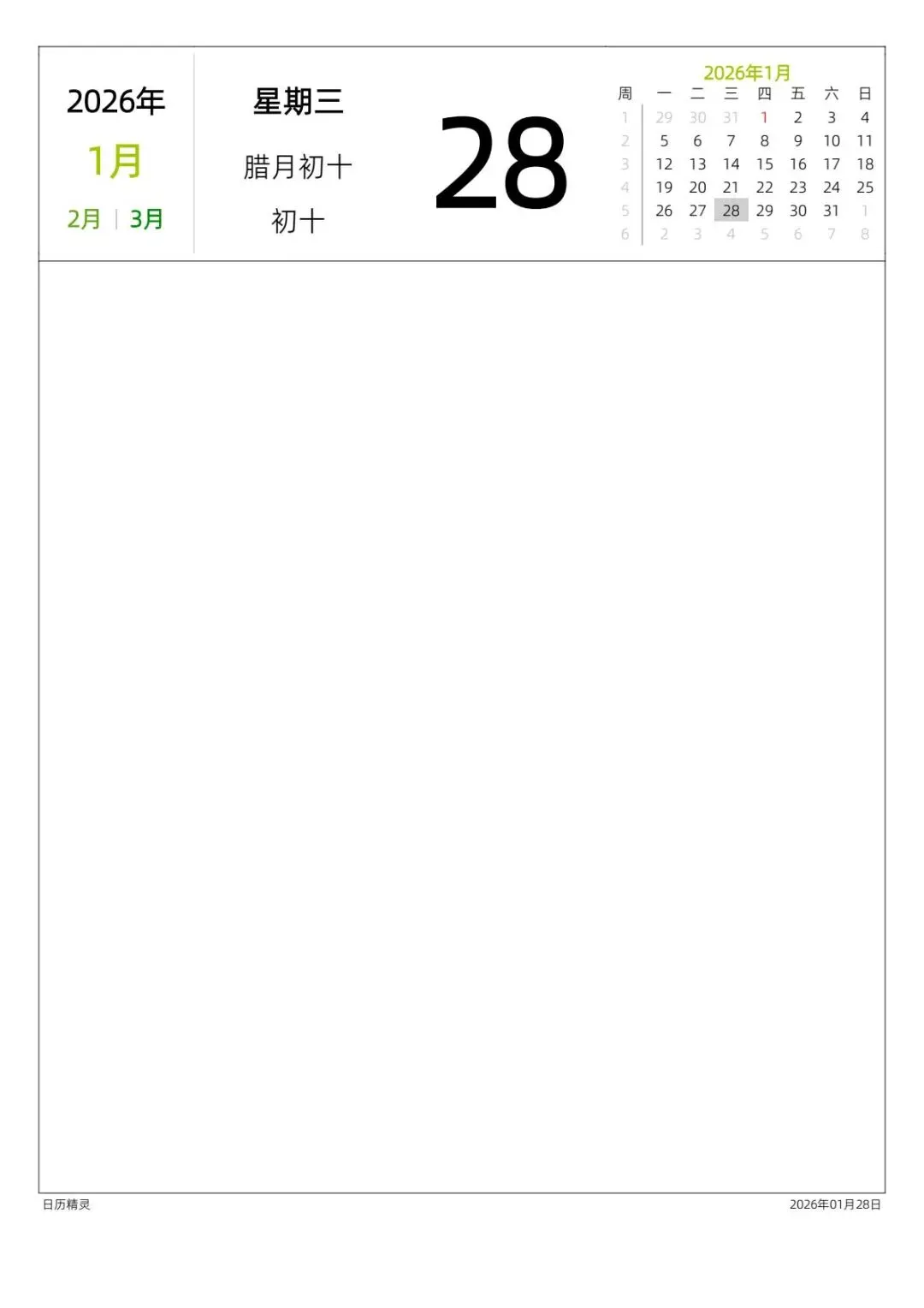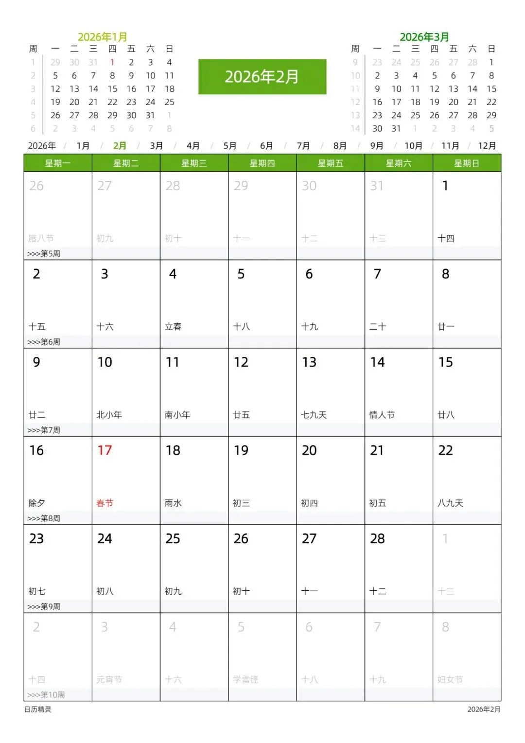 2026马年日历表,高清可打印〈附电子版、可下载〉