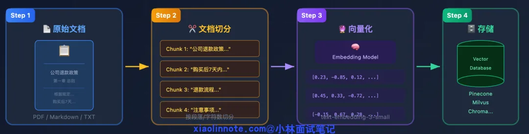 先说一个最重要的前提:原始文档不能直接存进向量库,必须先切成小块(chunk)再存。