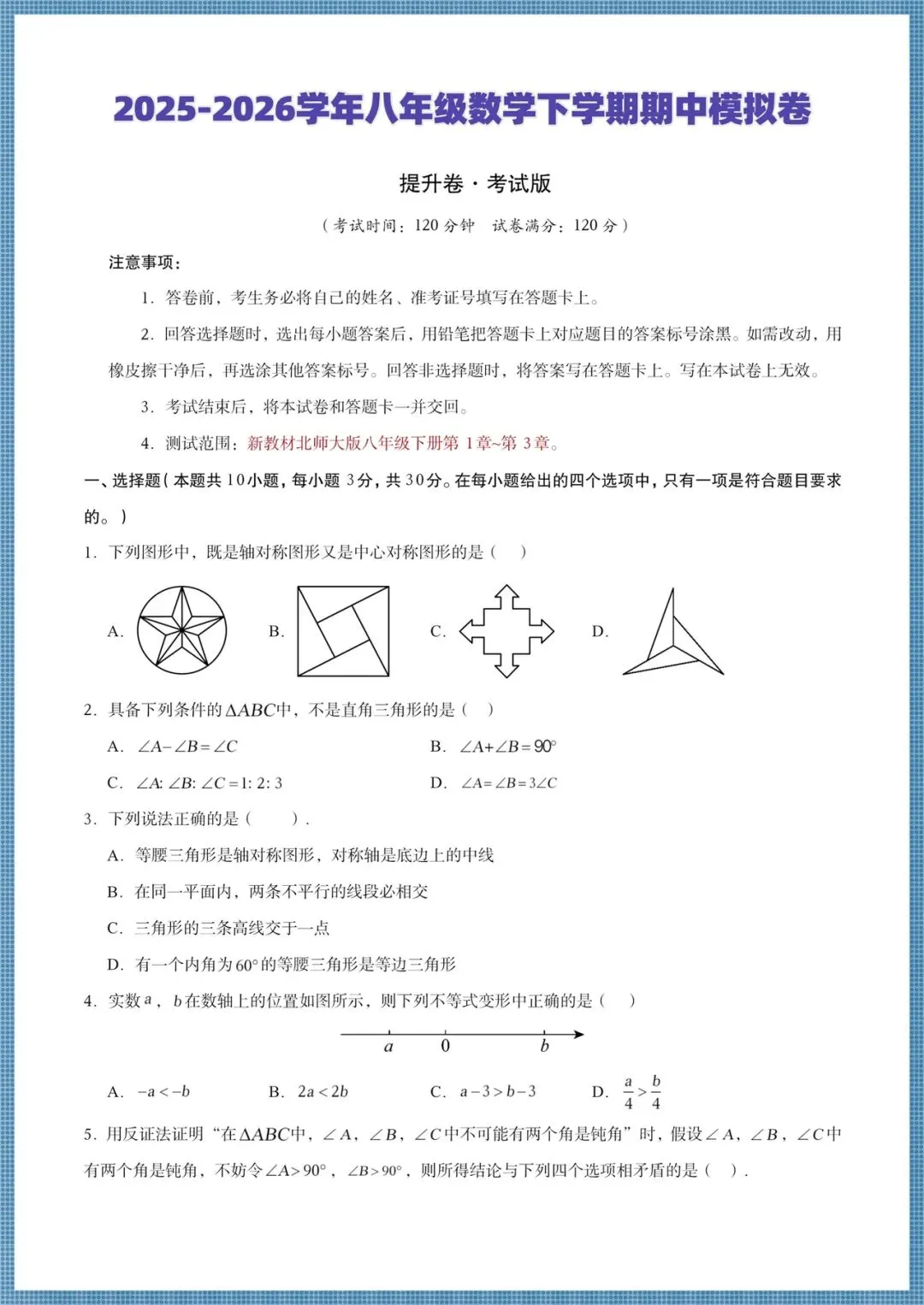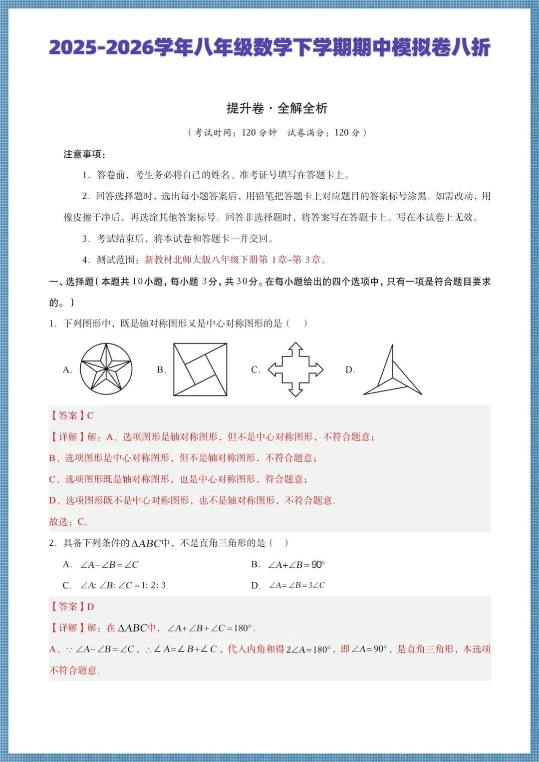 2026(北师大版)八年级下册数学期中考试测试卷+全解全析(培优+拔尖卷),多套电子版可打印!