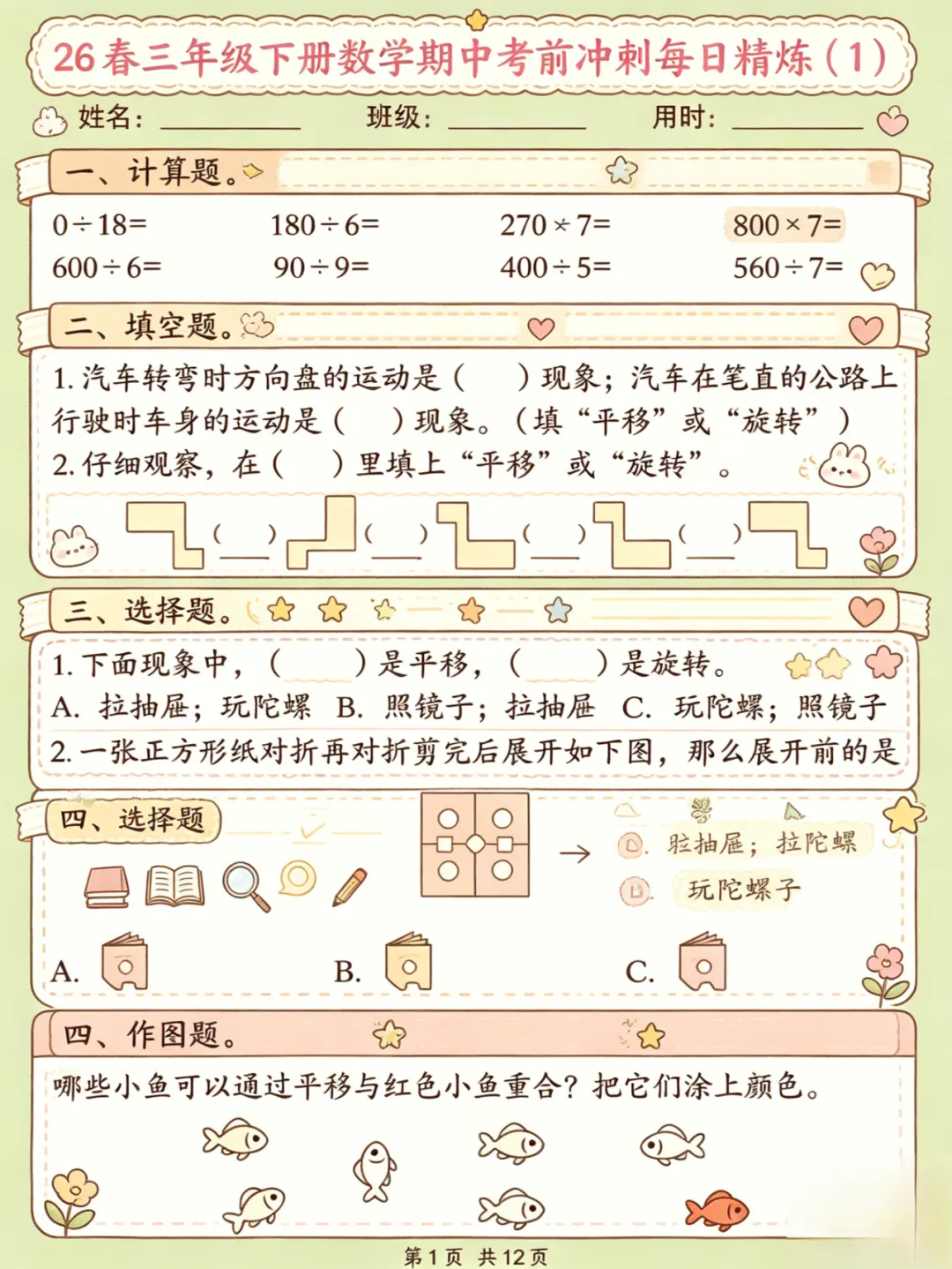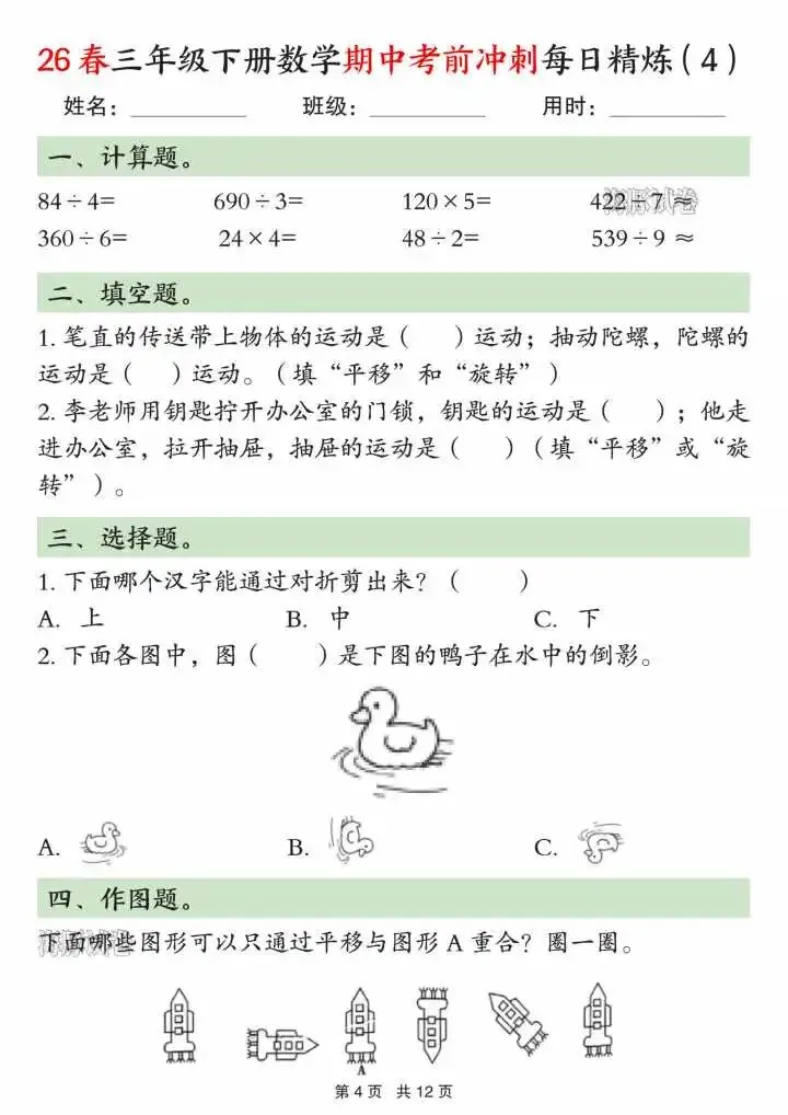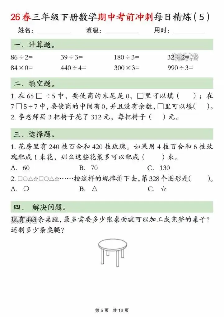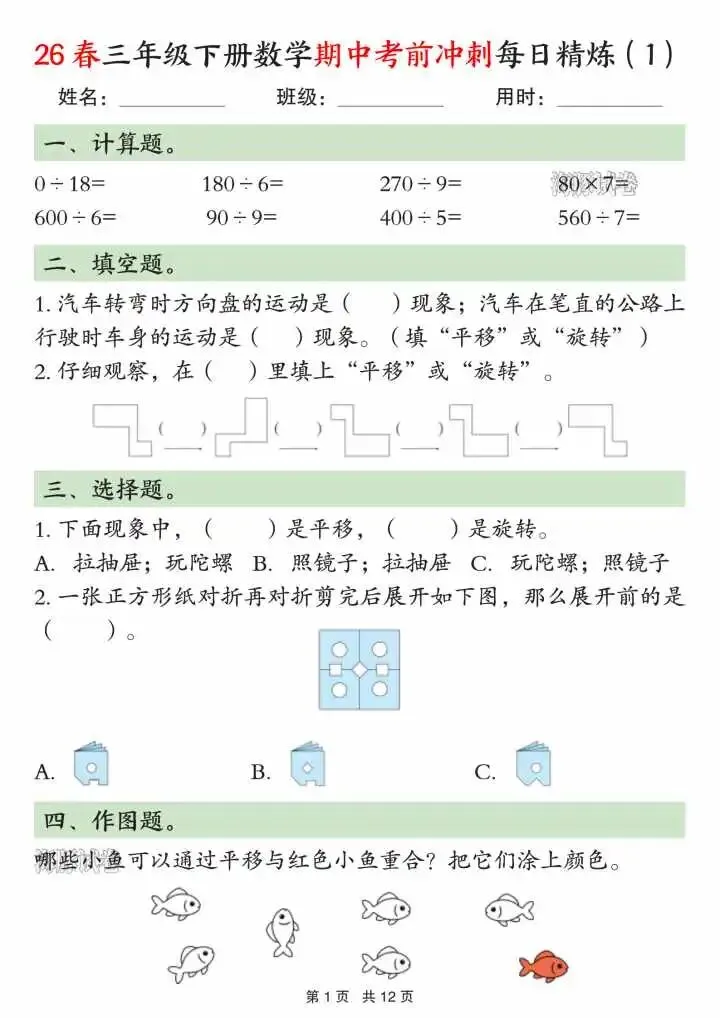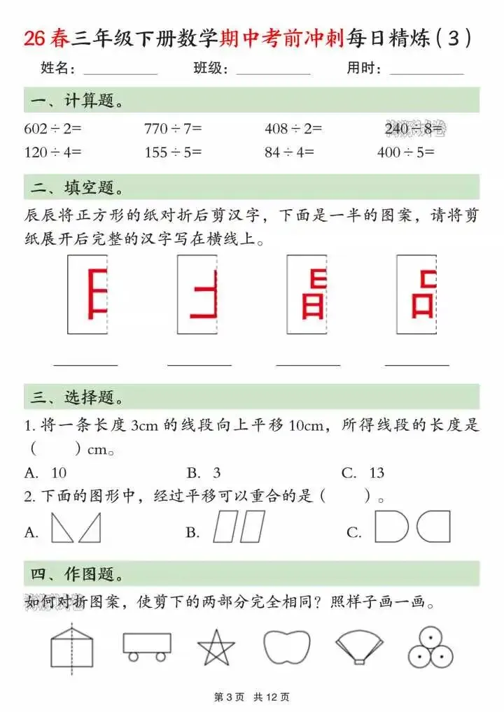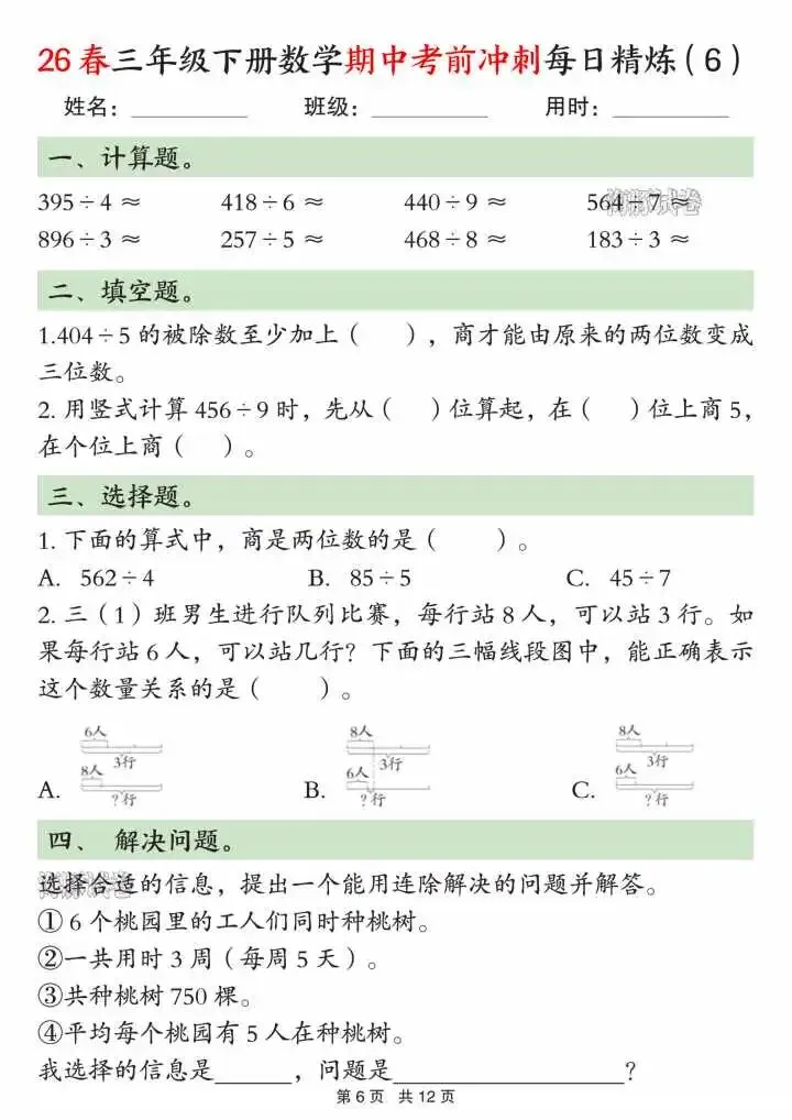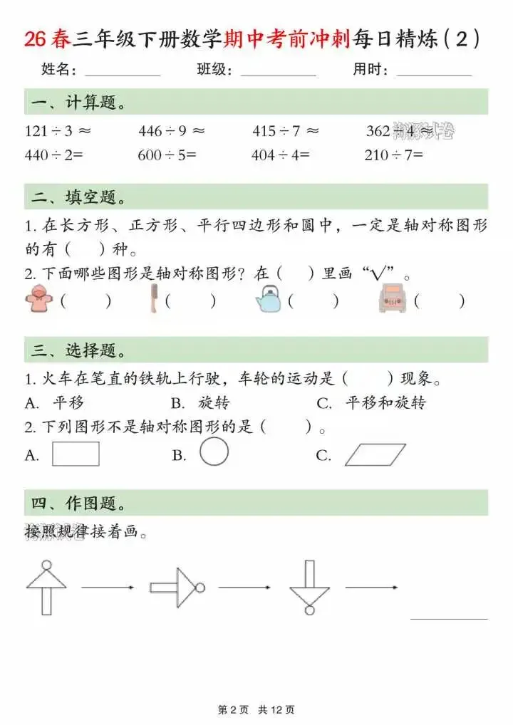 今天给大家分享的是三下数学期中考前冲刺每日练习二下数学期中考前冲刺每日练习