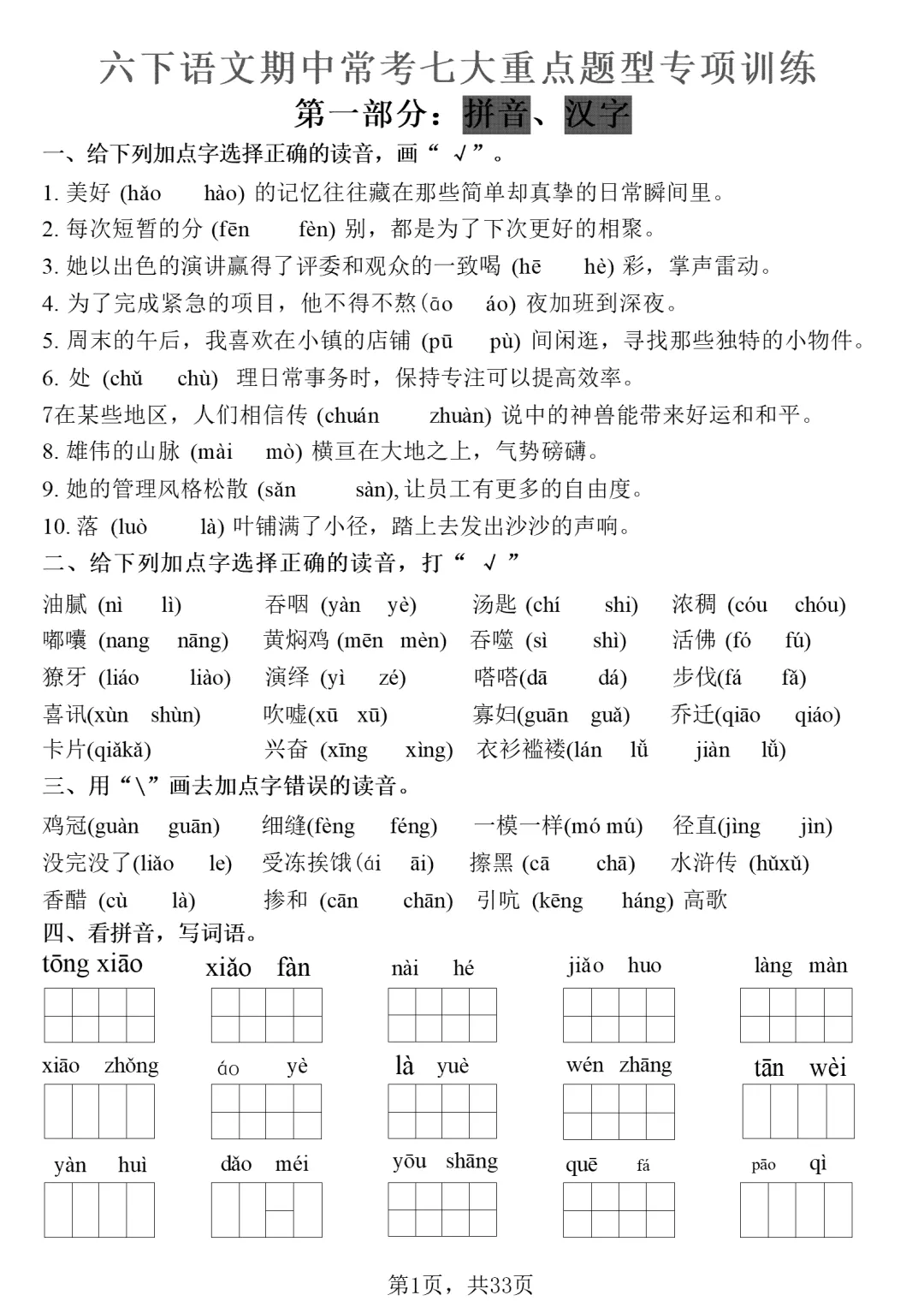 【期中常考七大专项训练】六下语文(有完整电子版可打印)(含答案)请加小编VX六年级下册语文期中复习日积月累专项练习(有完整电子版可打印)(含答案)六年级(下)语文 谚语、名言警句填空题_(有完整电子版可打印)(含答案)六下语文《期中复习古诗词情境默写专练》(有完整电子版可打印)(含答案)六年级下册语文期中复习默写表(有完整电子版可打印)(含答案)六年级(下)语文 期中质量检测卷(有完整电子版可打印)(含答案)