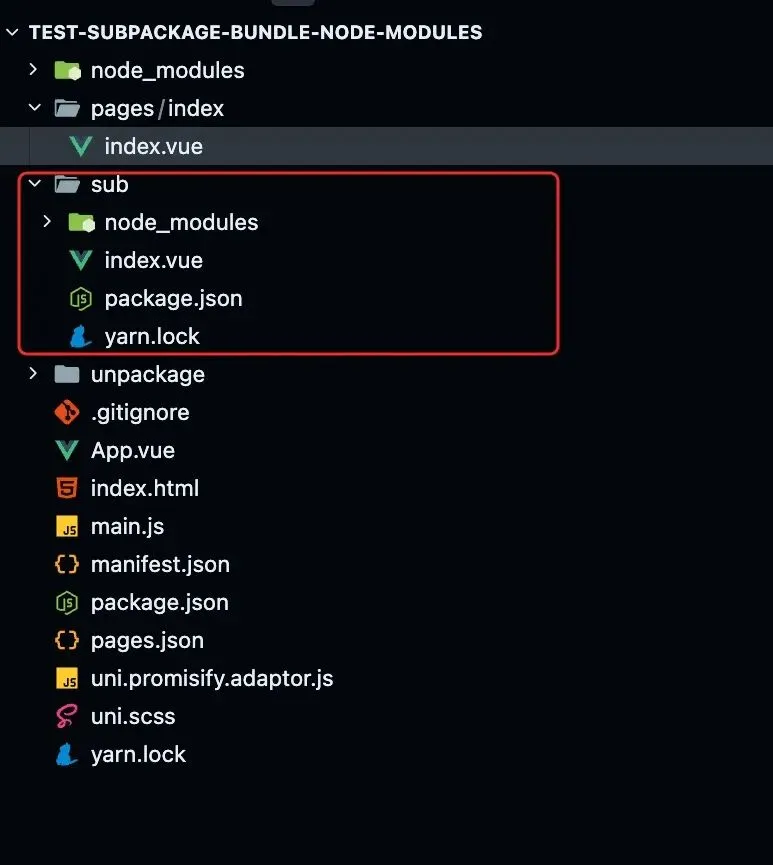 首先进入到分包的根目录,创建一个 package.json 文件,这里写分包需要用到的依赖,安装依赖