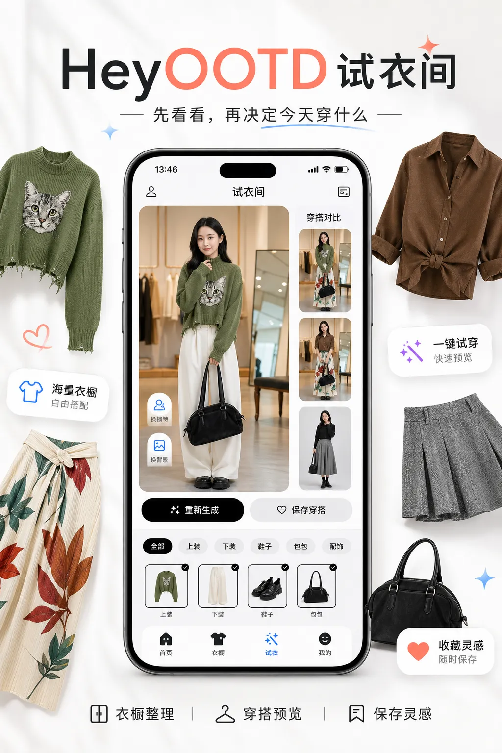 你可以先在手机里预览不同穿搭效果,再决定今天穿什么。喜欢的搭配也可以保存下来,慢慢形成自己的穿搭灵感库。