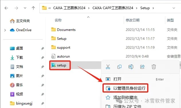 3.鼠标右击【setup】选择【以管理员身份运行】。
