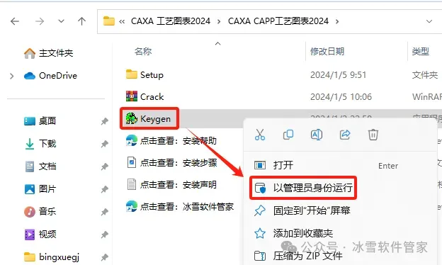 12.鼠标右击解压出来的【Keygen】选择【以管理员身份运行】。