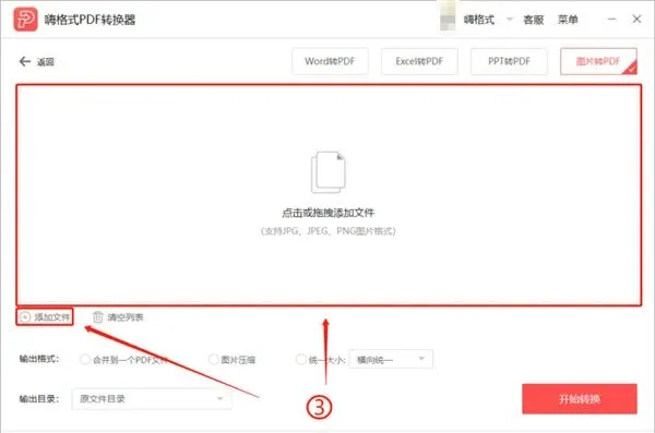 注意事项:输入文件格式仅支持.jpg、.jpeg和.png格式。输出格式说明:合并到一个PDF文件:可将输入文件合并到一个PDF文件中;图片压缩:压缩图片文件大小,以减小输出文件大小;统一大小——横向统一:统一图片文件横向宽度大小;统一大小——纵向统一:统一图片文件纵向高度大小;注:文中图片仅供参考