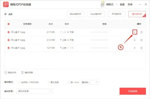 6、点击【开始图标】逐个转换文件;或勾选需要转换的文件后,点击【开始转换】按钮批量转换文件,即转换完成。