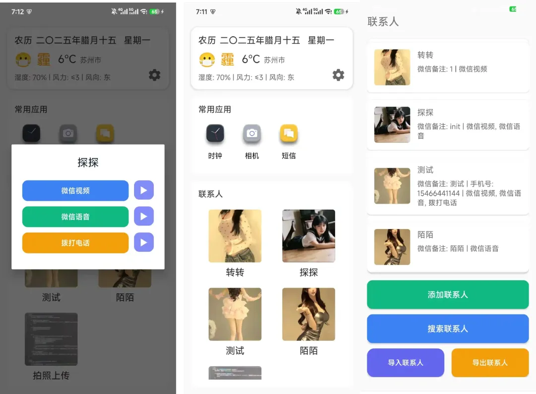 它最打动我的地方,是把原本复杂的微信视频通话——"打开微信→找联系人→点头像→点加号→点视频"——整整五六步操作,变成桌面上的一键直达。长辈不用认字、不用翻找,点一下头像就能自动拨通视频。