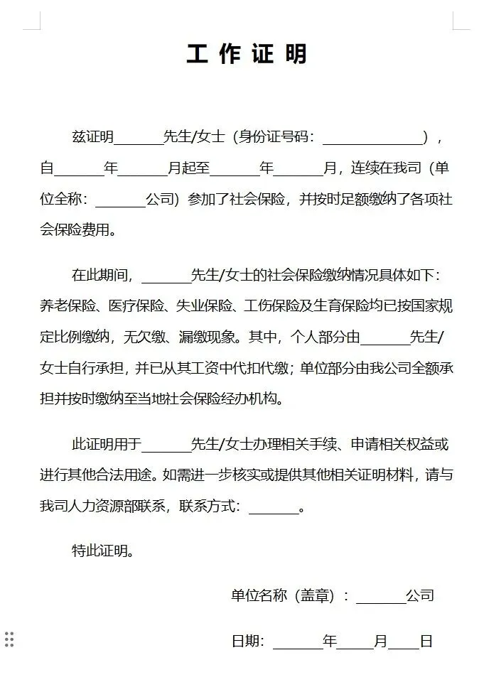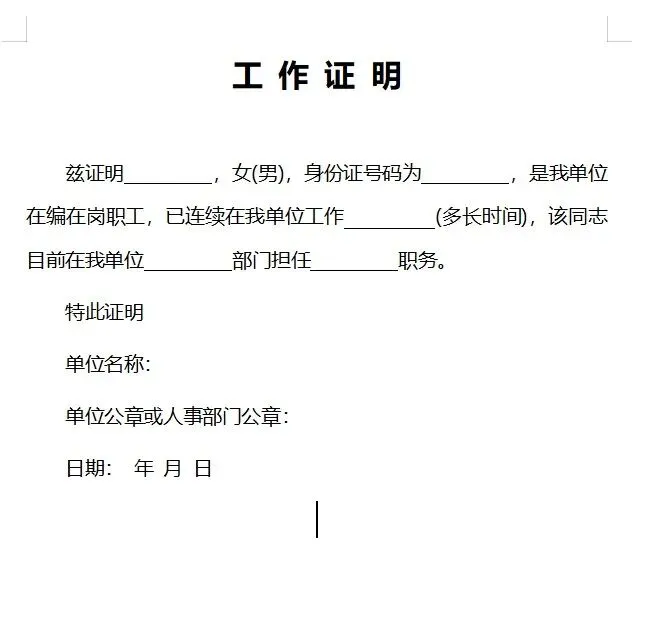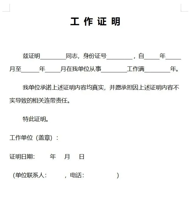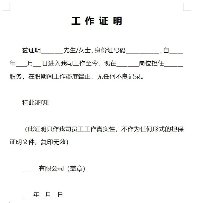 为您提供多款标准工作证明模板与范本,包含可编辑的Word格式。模板内容规范,适用于办理贷款、签证申请、入职背调等多种通用场景,方便在职人员参考或HR快速为员工开具,助您高效完成各类资格审核