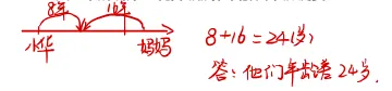 1、小华 8 年后和妈妈 16 年前年龄相等,求他们的年龄差是多少?
