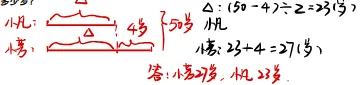2、小芳比小凡大 4 岁,当小芳和小凡的年龄之和为 50 岁时,小芳和小凡各是多少岁?
