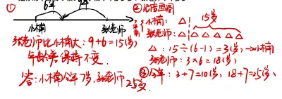 4、张老师对小楠说:“我 9 年前的岁数和你 6 年后岁数相同,7 年前,我的年龄是你的年龄的 6 倍。” 小楠今年多少岁?张老师今年多少岁?