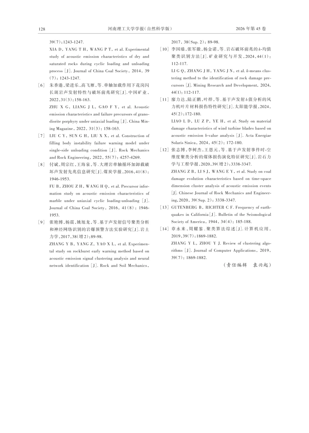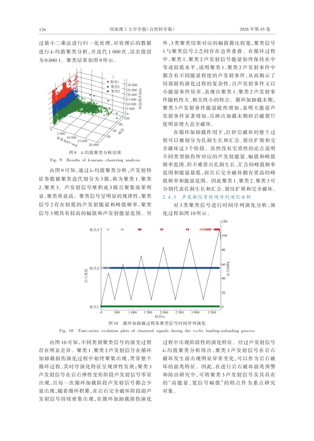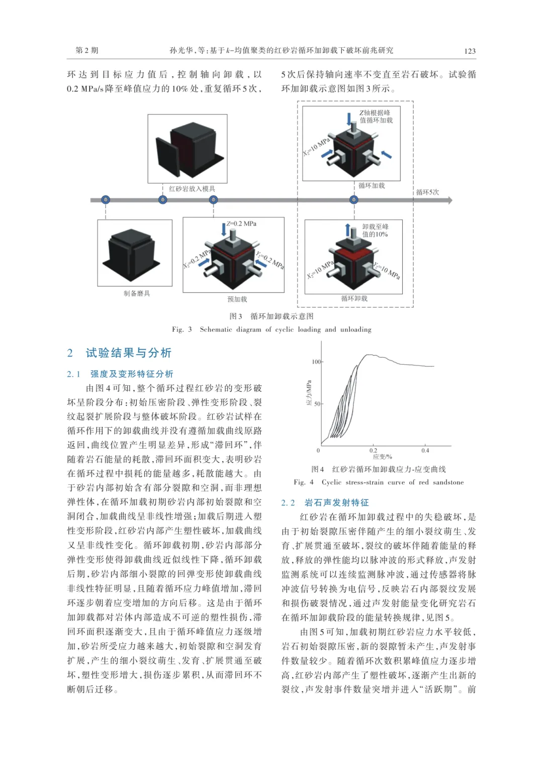 孙光华,齐育珠,刘志义,等.基于k-均值聚类的红砂岩循环加卸载下破坏前兆研究[J].河南理工大学学报(自然科学版),2026,45(2):120-128.