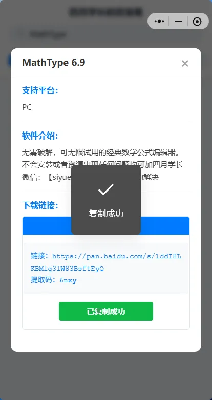 打开【四月学长的百宝箱】小程序,在搜索框输入【AutoCAD】。选择对应的选项,点击复制链接,即可获得对应资源啦。