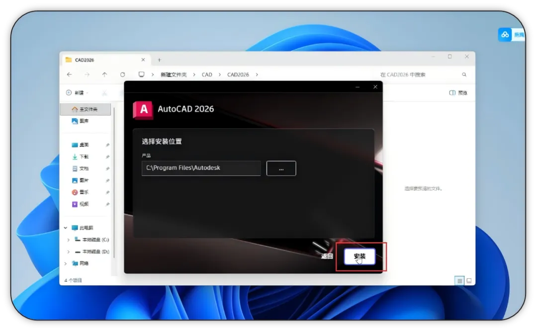 选择安装位置,点击【安装】按钮。