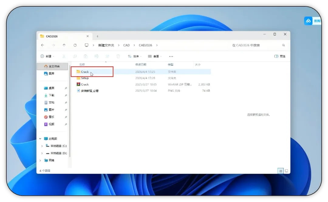9. 返回安装包根目录,找到并打开【crack】破解文件夹。