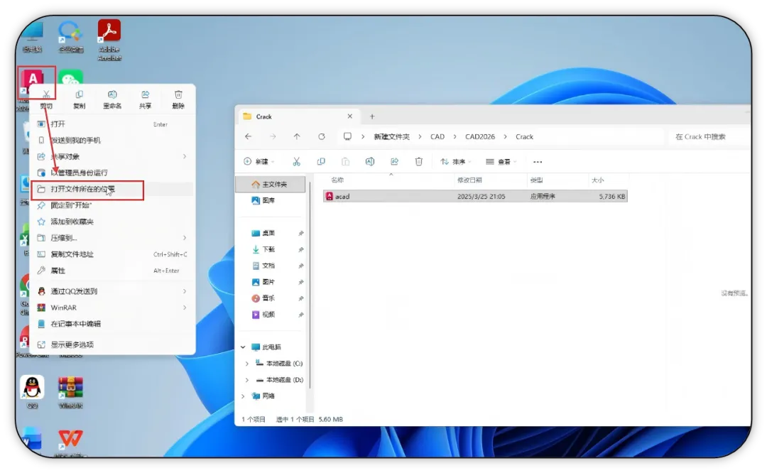11. 回到电脑桌面,右键点击 CAD 软件快捷方式,选择【打开文件所在位置】。