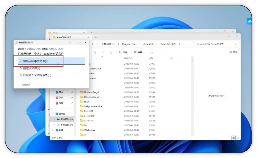 13. 弹出提示时,选择【替换目标中的文件】。