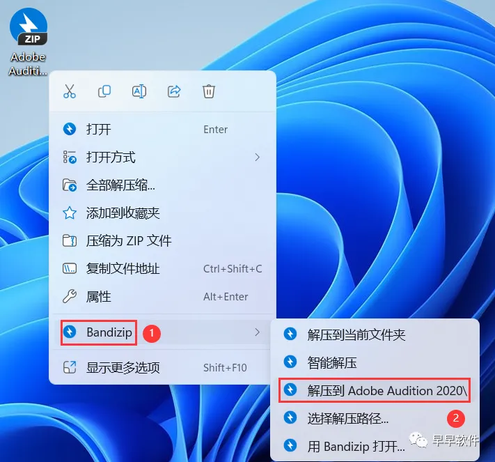 1、下载Adobe Audition 2020软件安装包到电脑上,右键选择【解压到Adobe Audition 2020\】