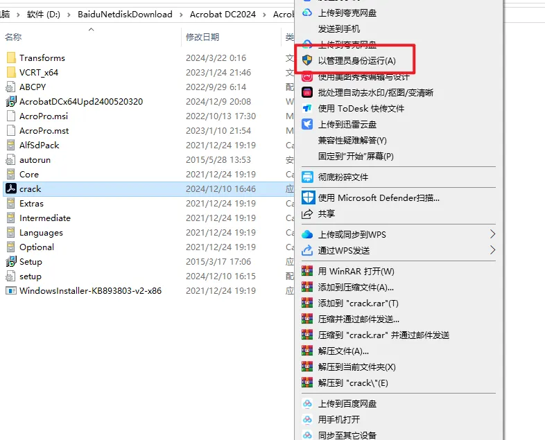 7.返回安装包,选中【Crack】程序【以管理员身份运行】