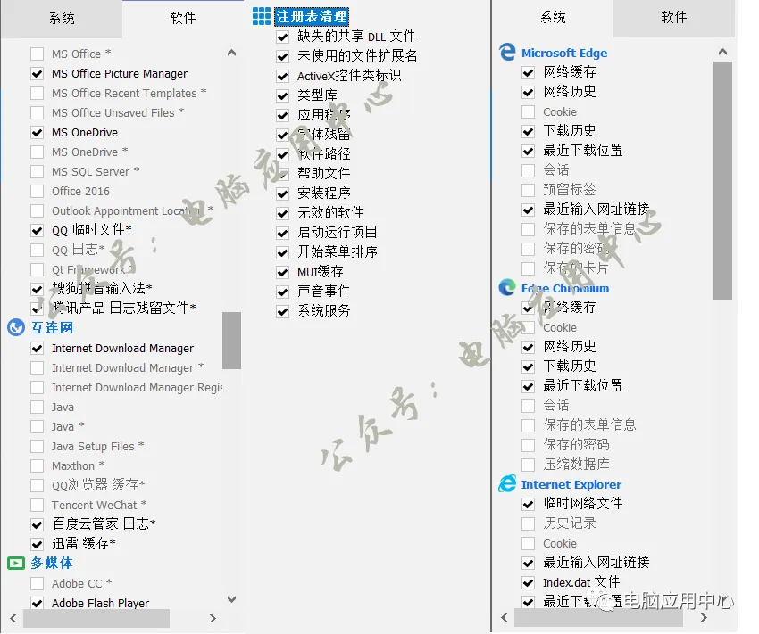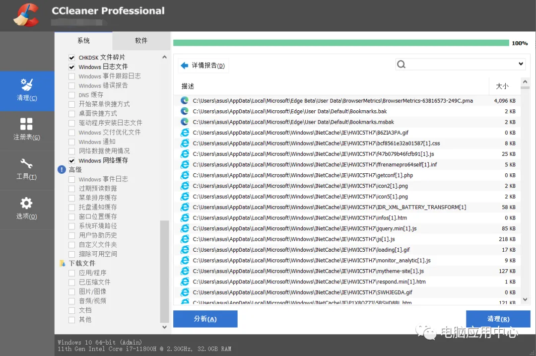 3、自定义清理电脑系统或软件的缓存/垃圾,以及清理注册表