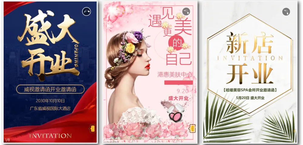 找到开业邀请函相关模板,不需要任何设计基础,直接套用。