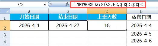 这样就无需指定日期,可直接根据当天时间自动生成标签。=NETWORKDAYS(EOMONTH(TODAY(),-1)+1,EOMONTH(TODAY(),0))若有其他假期,可根据实际情况自定义[节假日区域]。=NETWORKDAYS(入职日期,TODAY())注意,NETWORKDAYS函数默认为“双休”,如果想要按“单休”计算,不能直接使用此函数。关于星期、周数、工作日相关的四个函数,WEEKDAY、 WEEKNUM、WORKDAY、 NETWORKDAYS 到这里是不是就完全掌握了呢?期待下周与你相见~我们每周,一见。每周一,见。应该没人喜欢在假期里还要看这些颇费大脑的公式,那我们下下周见吧。