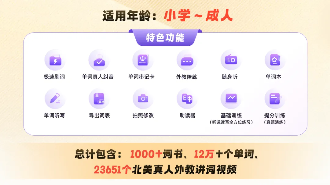 ✅12W+词汇覆盖全学段,同步校内教材,考级留学词库全有