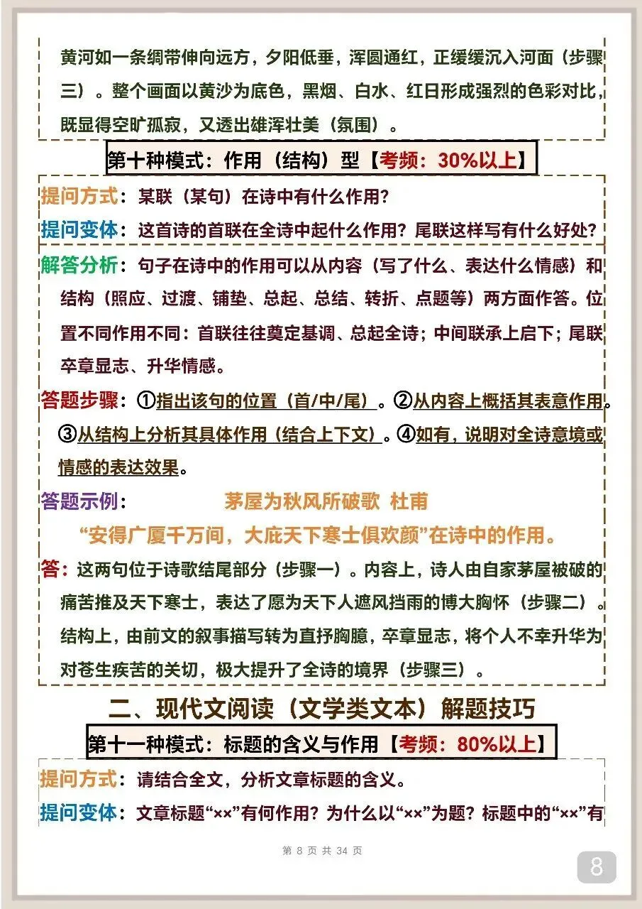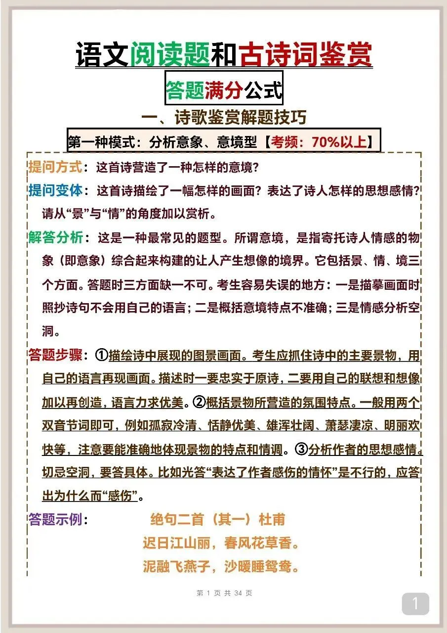 “考场必备:语文阅读与古诗词鉴赏答题模板”