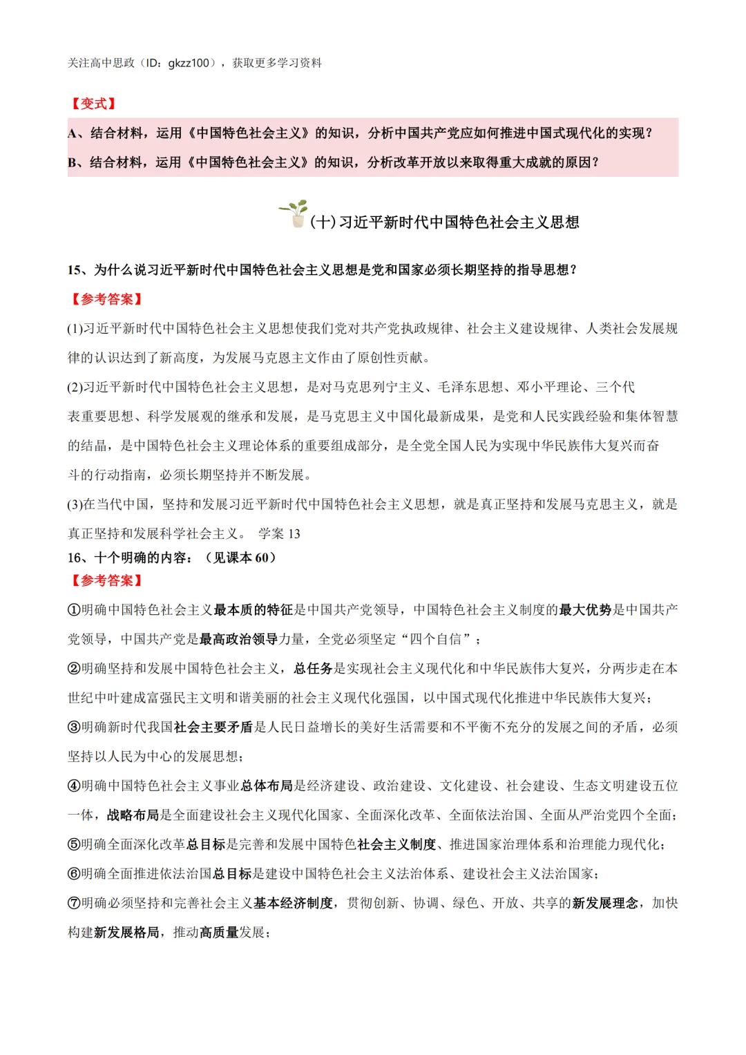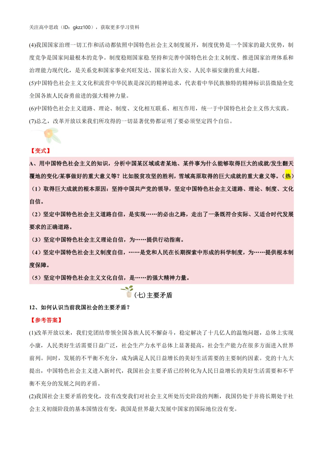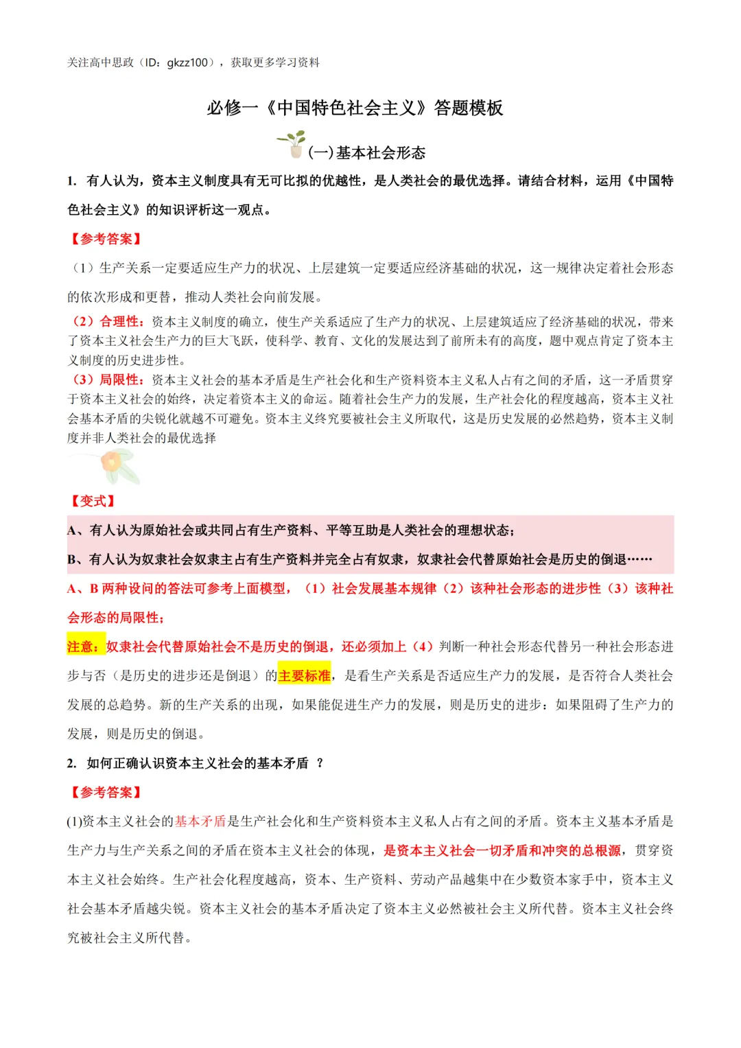 高中政治必修一《中国特色社会主义》答题模板!高中政治必修一