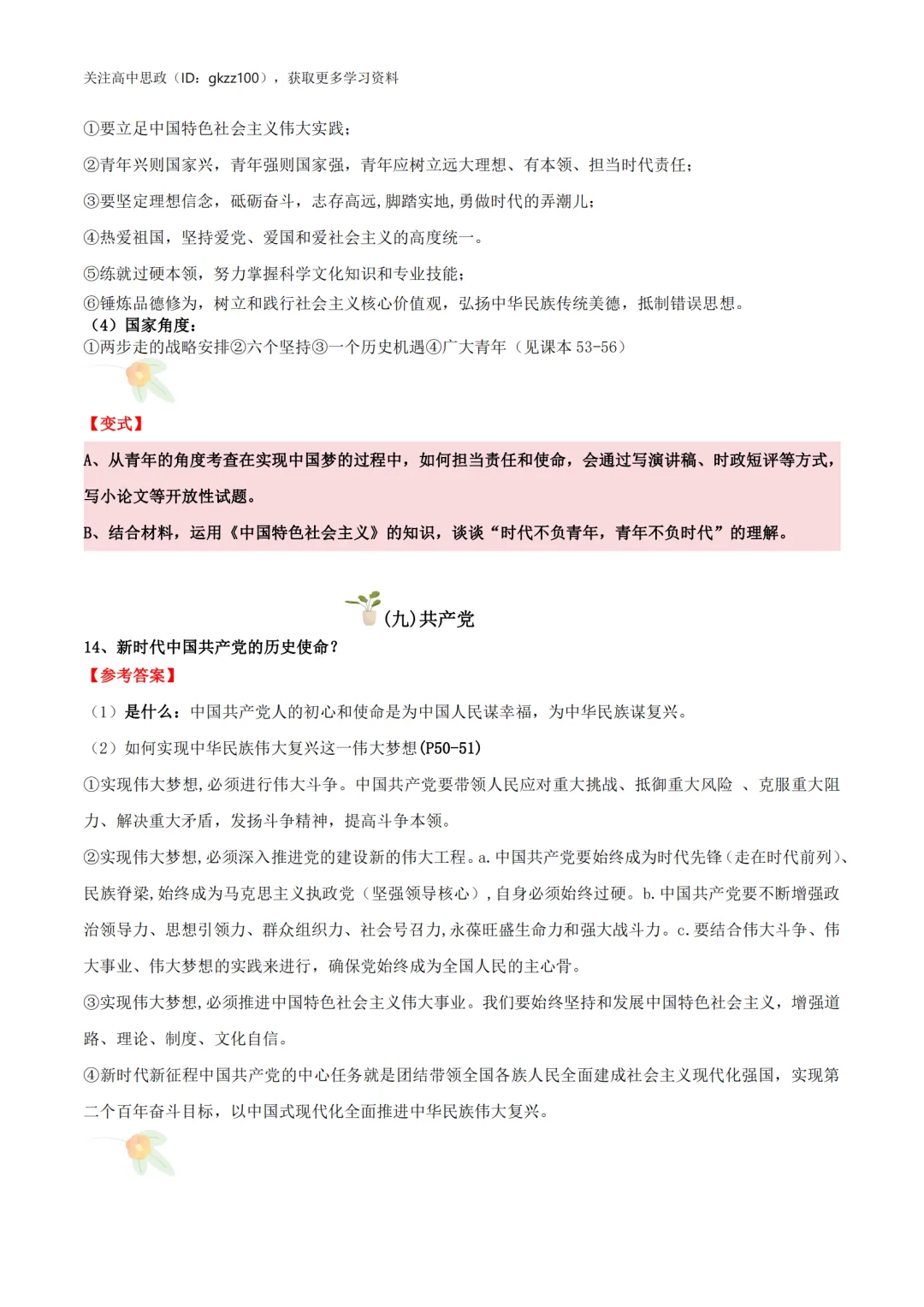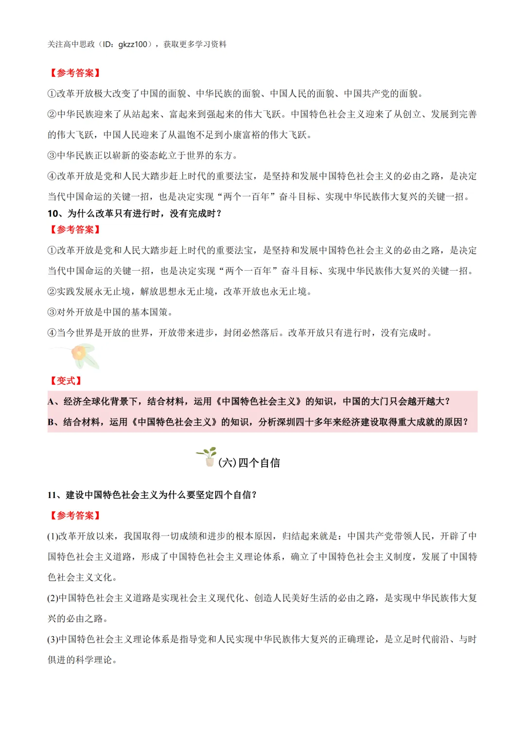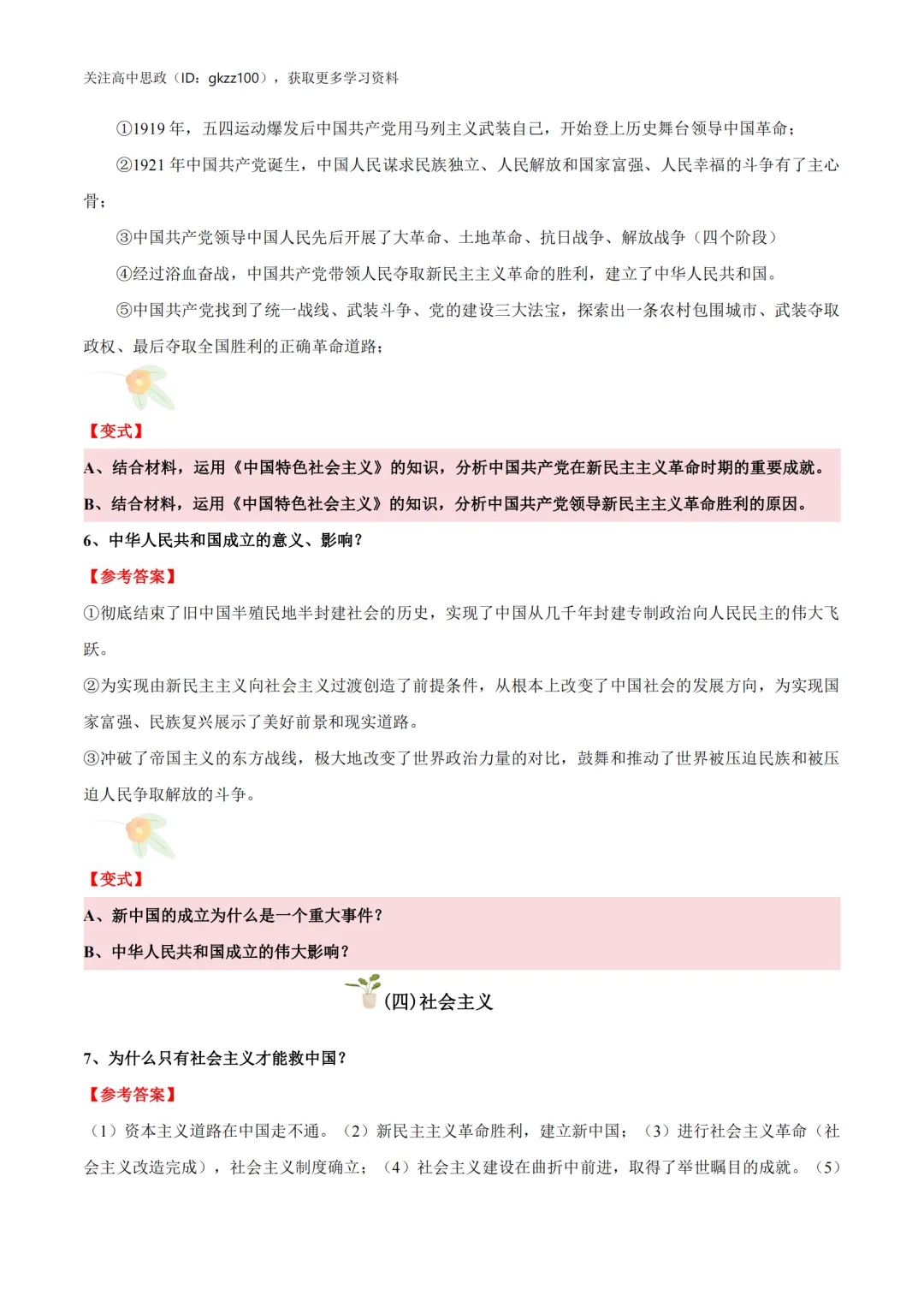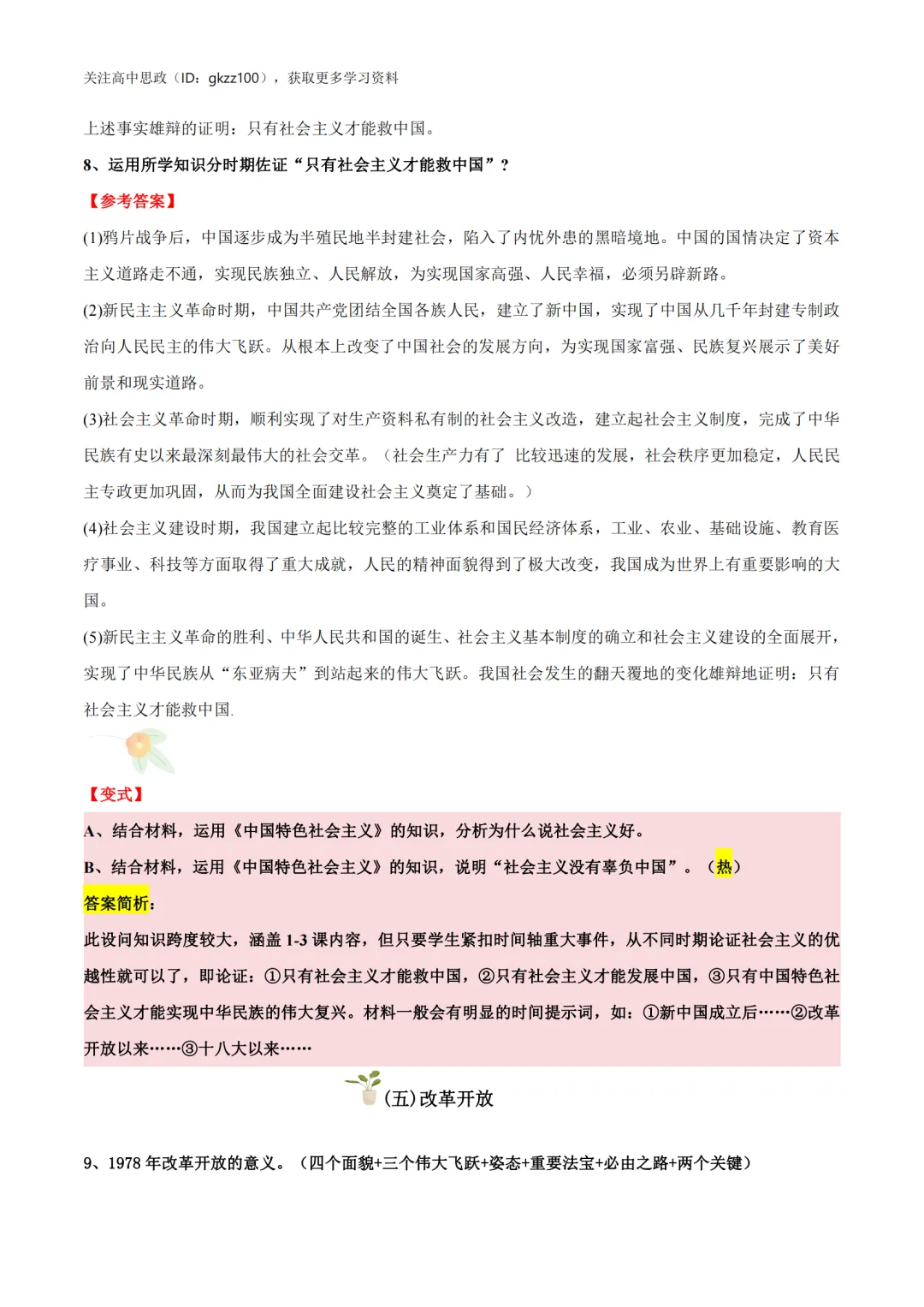 高中政治必修一《中国特色社会主义》答题模板!高中政治必修一