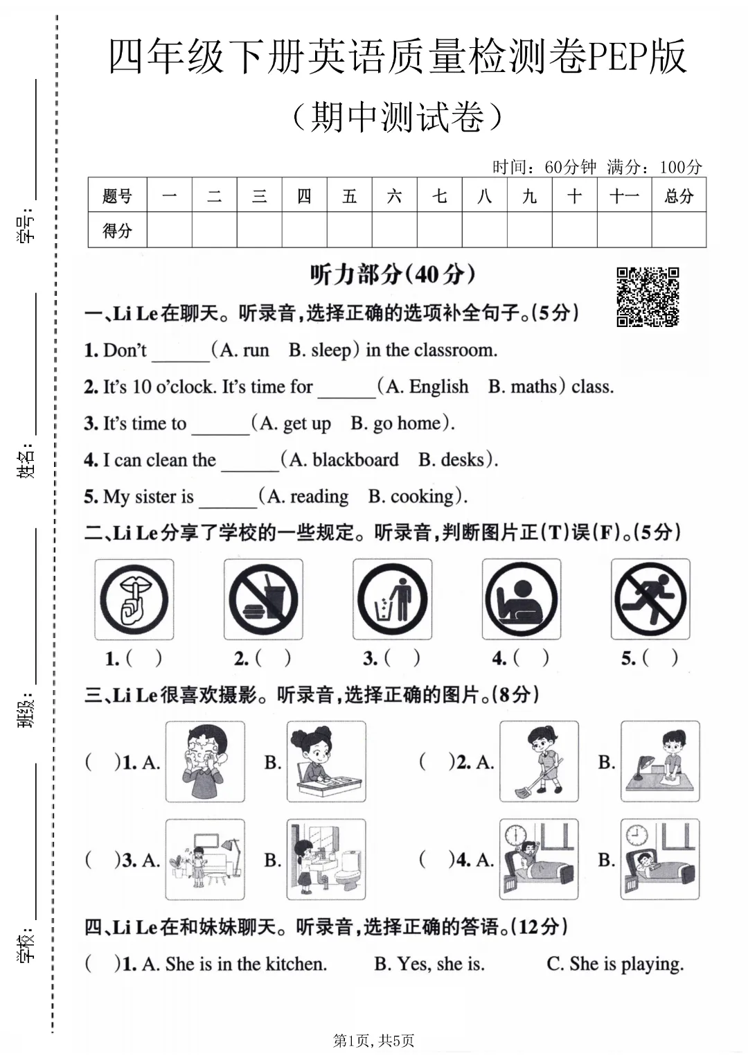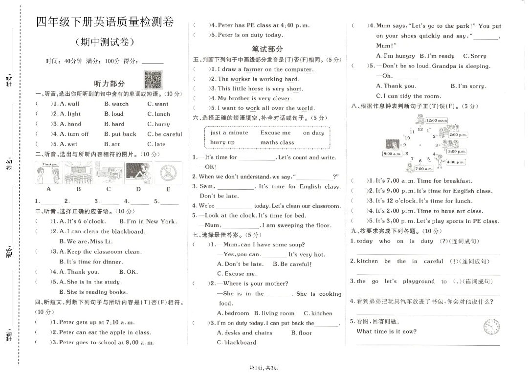 26年人教PEP版英语四年级下册《期中质量检测卷》2套,电子版可打印26年人教PEP版英语四年级下册《单元知识点点背记清单》,共8页,电子版可打印可下载。这套人教PEP版小学英语四下期中测试卷,包含听力、语音辨析、单项选择、补全对话、阅读理解等,帮助孩子检测知识掌握情况,查漏补缺,备考期中考试。需要的家长给孩子打印出来吧。(温馨提示:文末有完整电子版领取方式)领取完整电子版方式点击下方卡片关注进入“小学英语冀教版”的后台发送消息 235获取打印电子版方式说明:本微信公众账号分享的资源来源于网络,仅供学习使用!版权归原作者所有,如有侵权,请联系删除,谢谢