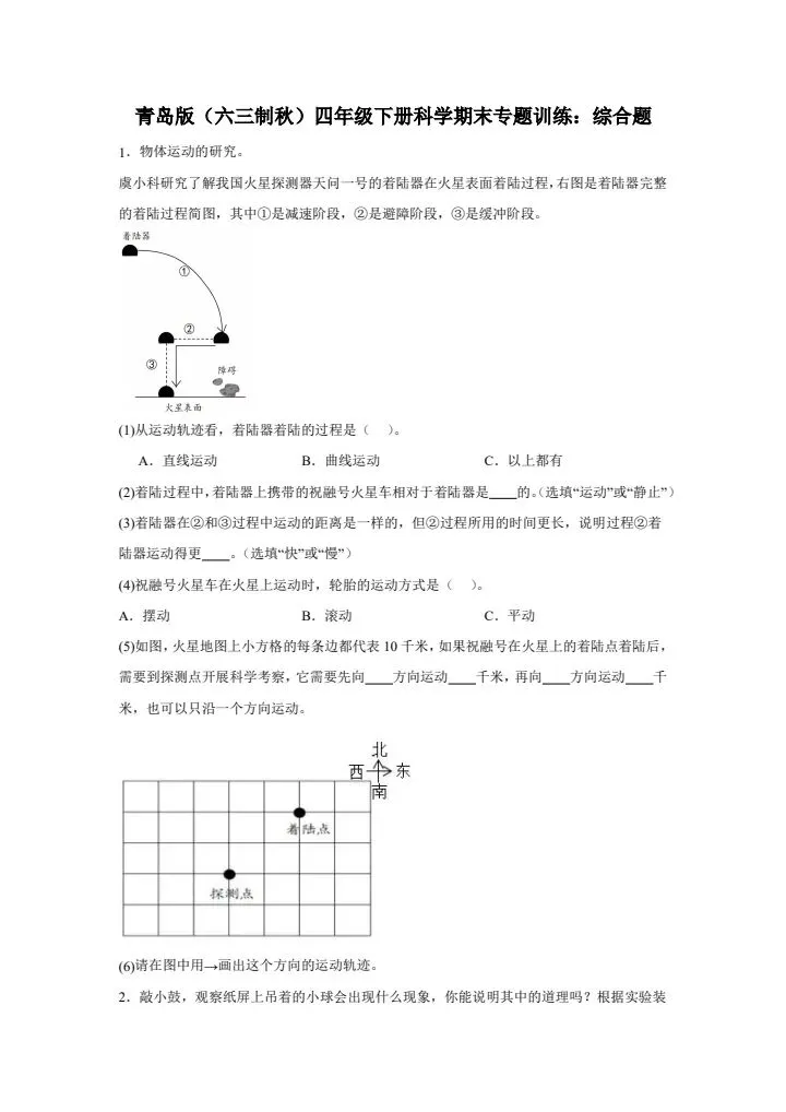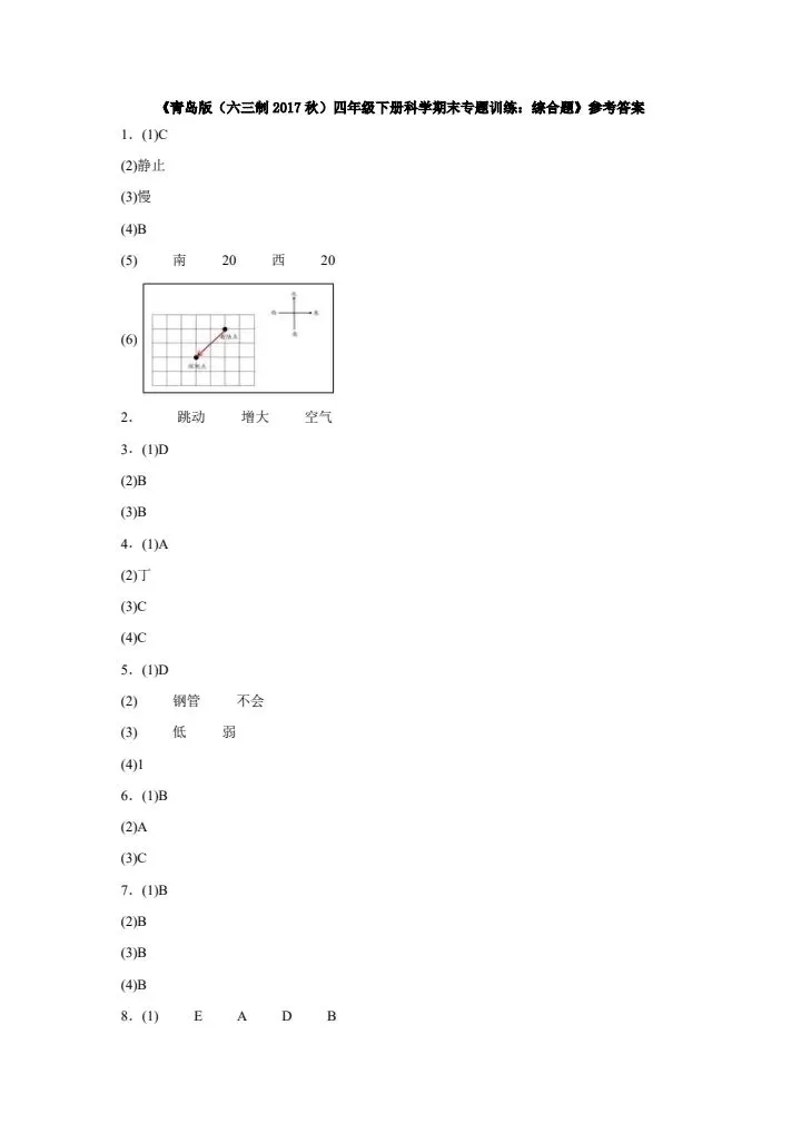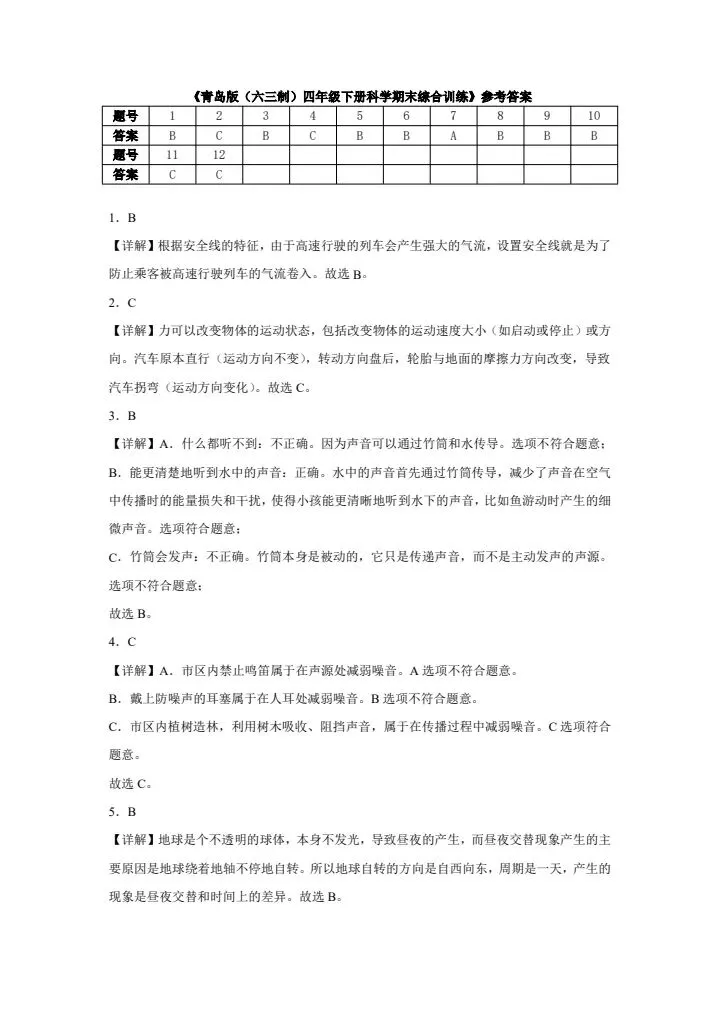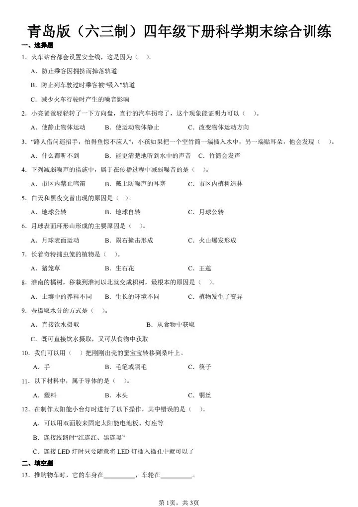 今日份分享四年级下册科学青岛版(六三制)期末综合训练(含答案)完整电子版可打印!这份资料已经整理成可打印版本,方便孩子随时翻看学习,建议家长先收藏,再转发给身边有需要的家庭,一起帮助孩子高效学习~