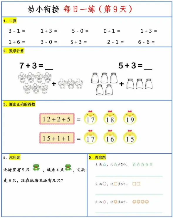 幼小衔接数学一日一练可打印版!成都家长帮孩子免费领,30天搞定数学!点击蓝字 关注我们成都的家长们注意了,幼小衔接数学一日一练可打印电子版记得帮孩子们领取!一共30页,每天一页,一个月就搞定数学了!具体长这样👇👇👇(更多资料可以添加领取)领取方式:添加老师微信👇👇👇备注关键词:427全部免费领取,可直接打印精彩推荐卡通版10以内加减法可打印高清版试卷免费领!成都幼小衔接必备!成都幼小衔接必备 | 28套拼音练习题可打印(含答案)!37套幼小衔接数学试卷免费领!打印就能做,帮孩子轻松过渡一年级