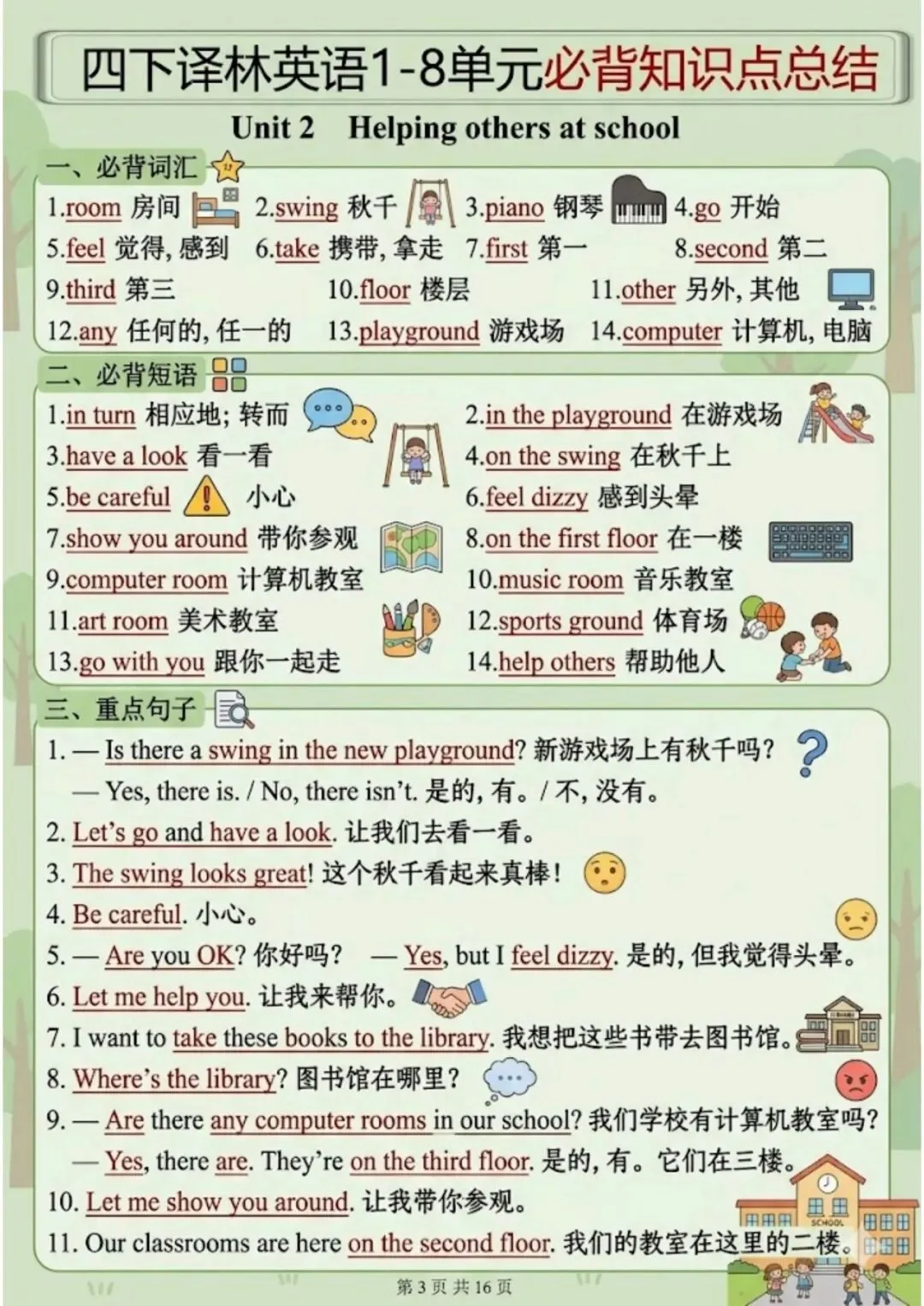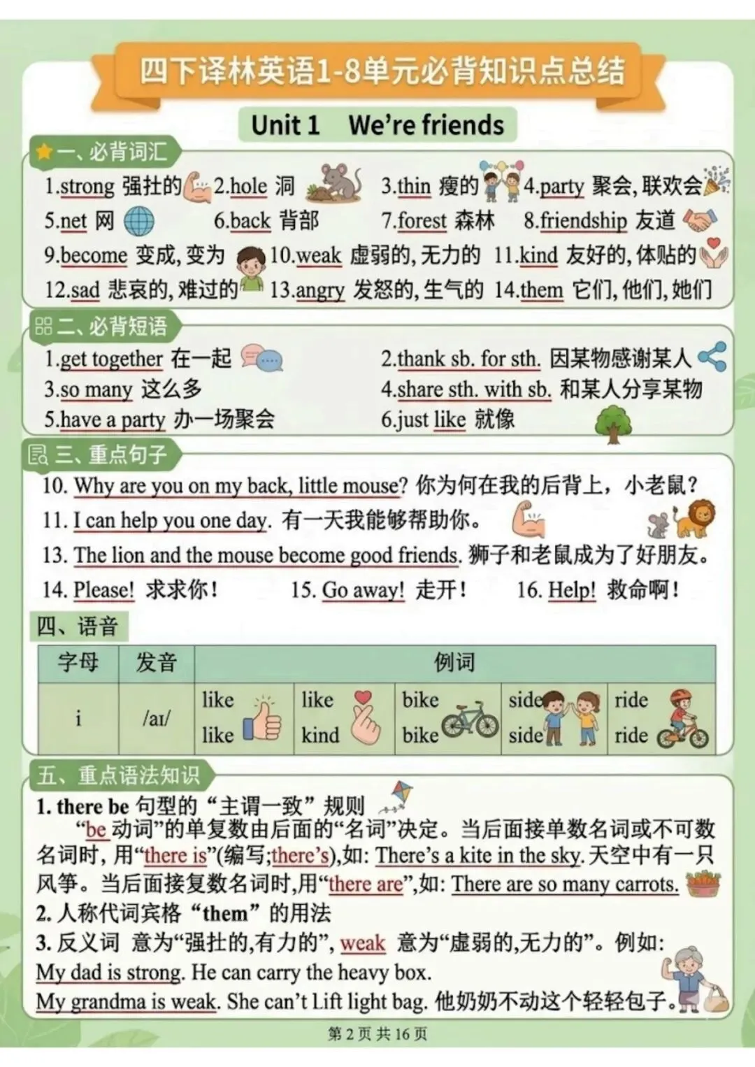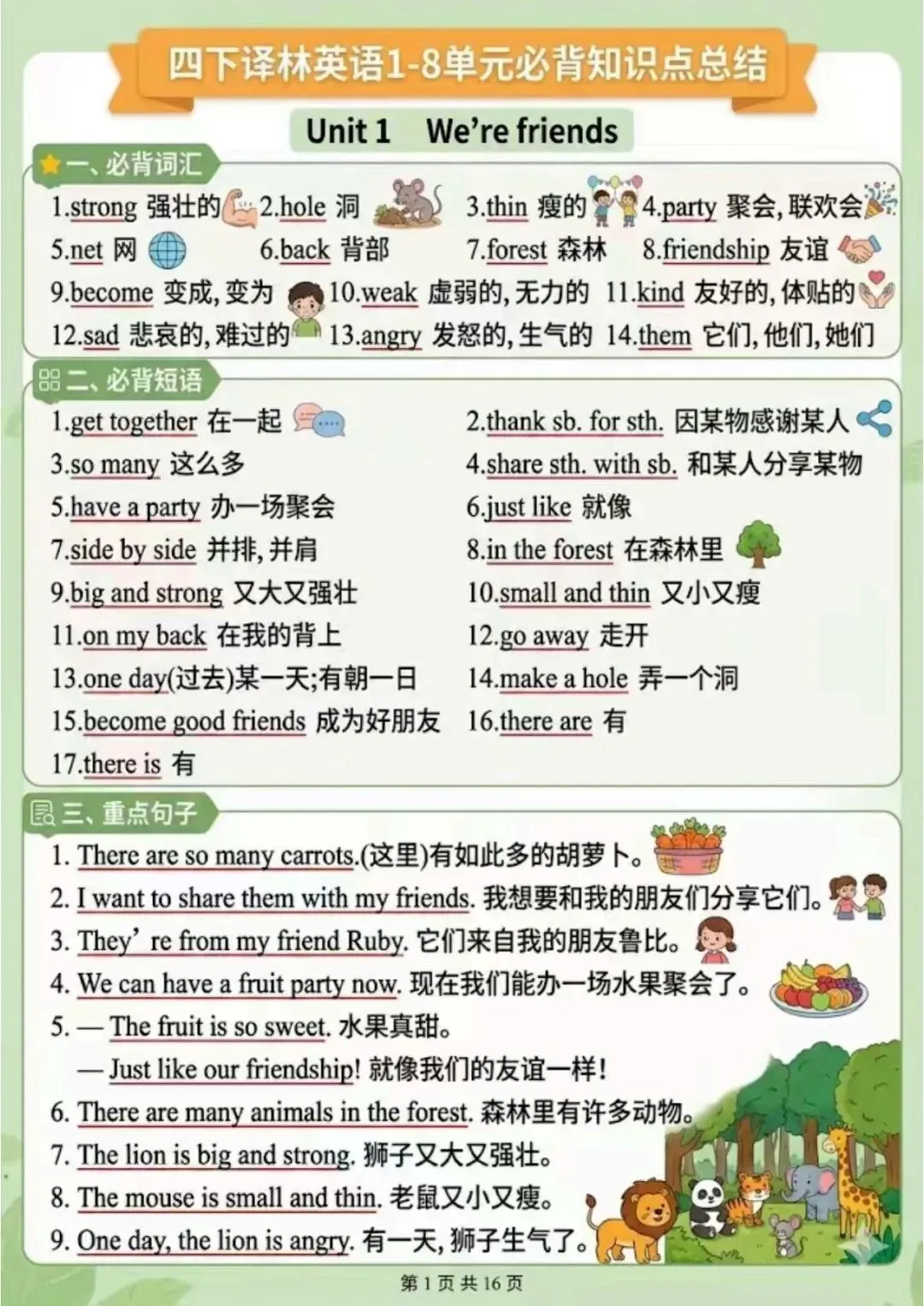 今天给大家分享的2026春四年级下册译林版英语1-8单元知识点总结,背记版整理不易,欢迎下载~
