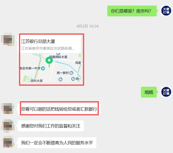 近日,我们发布江苏银行APP大面积断网、用户无法正常登录的相关内容后,一桩蹊跷事随之发生。一名陌生人士主动接洽,自称是江苏银行南京总部工作人员,同步发送总行定位佐证身份,反复索要联系方式,核心诉求只有一个:删稿。
