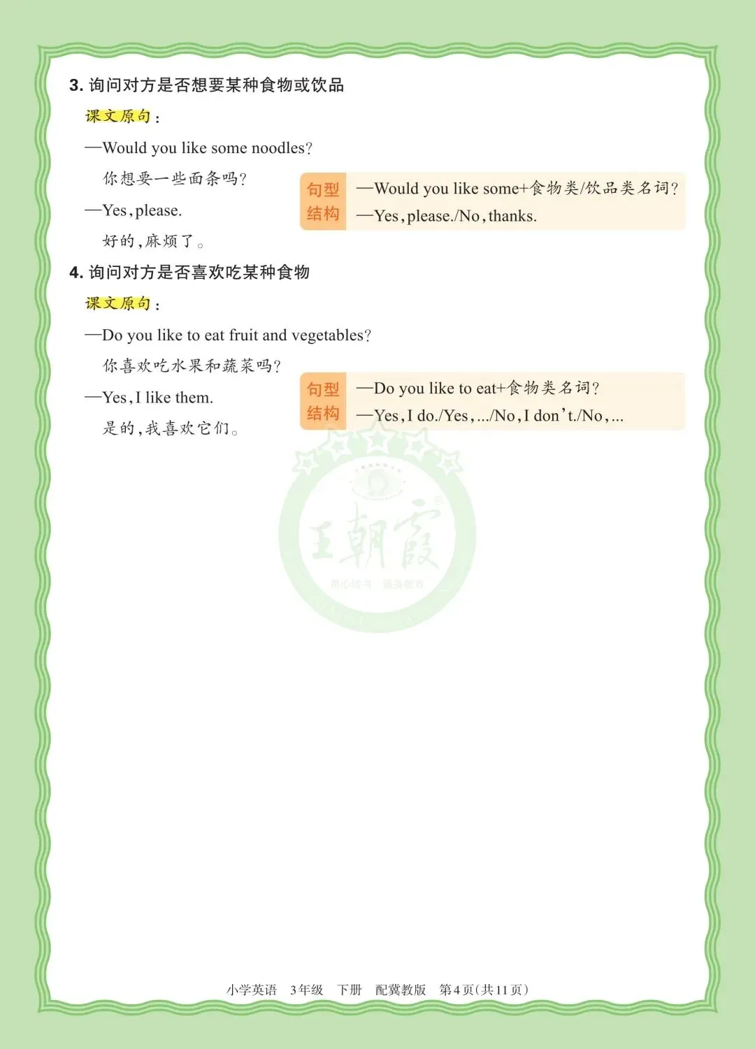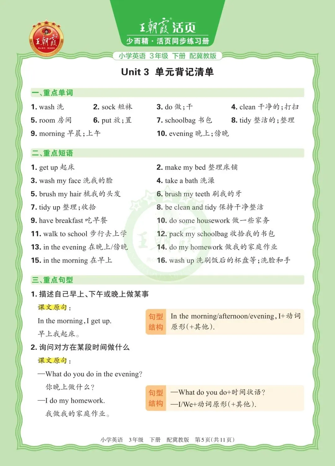 冀教英语三年级1-3单元 活页背记清单(可下载打印)