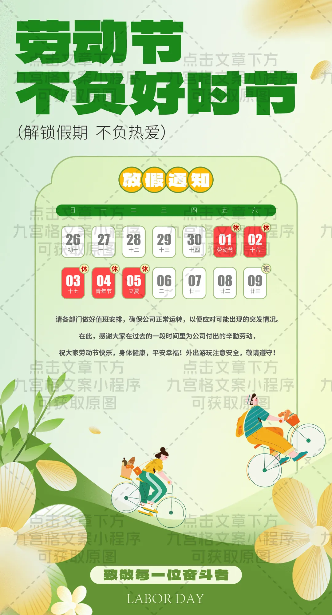 ✅ 放假时间:5月1日(周五)-5月5日(周二),连休5天!