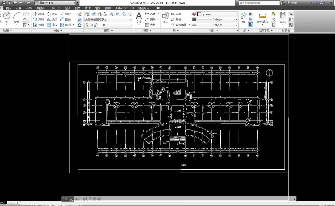 最后调用dwg_write_file(dwgFile.c_str(), dwg);完成dwg写入。4、开篇pdf文件提取数据写入到dwg文件后的效果如下本文是个识别提取图纸信息的开端,内部识别的由很多碎线条以及文字的识别等后续问题需要处理。