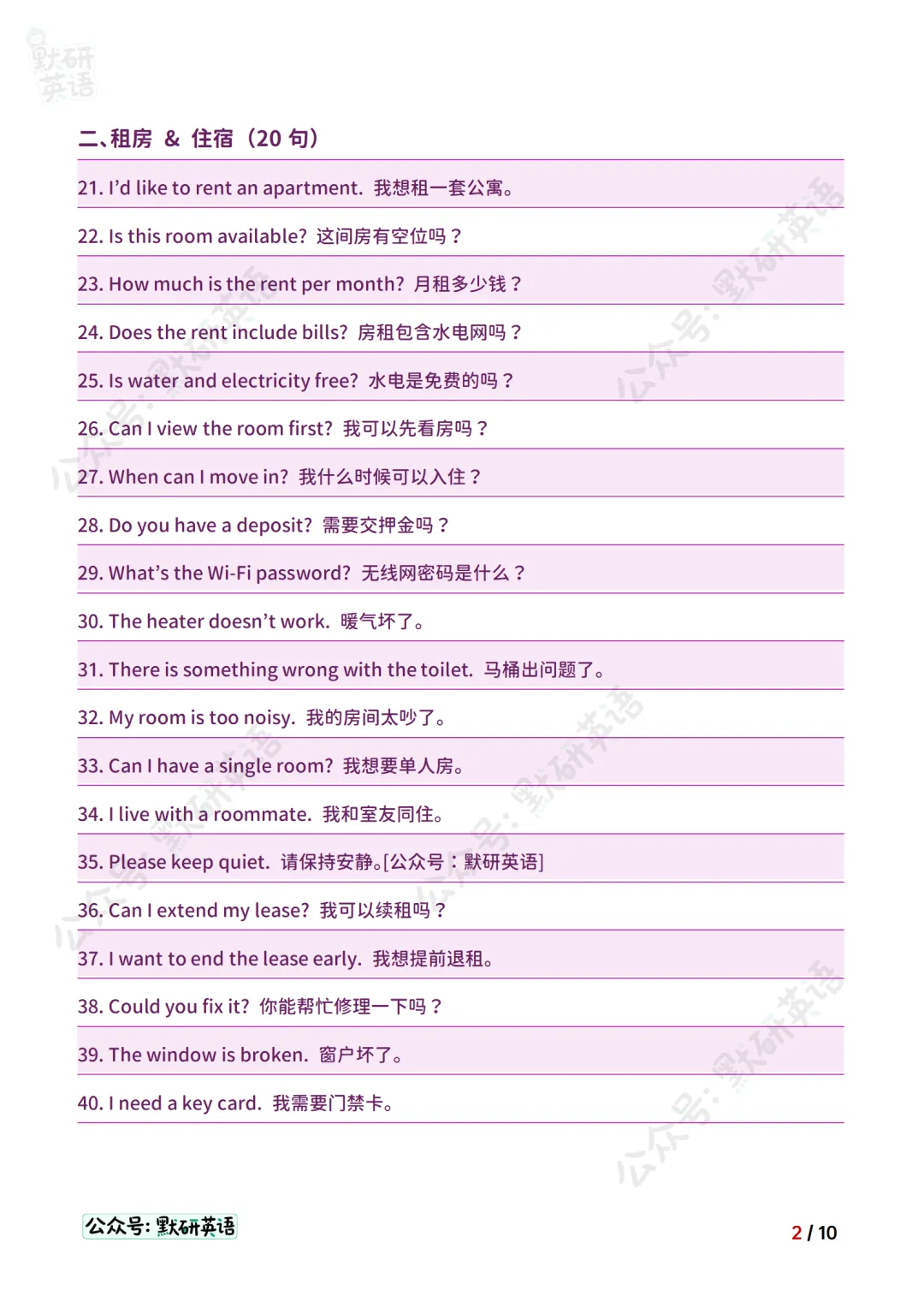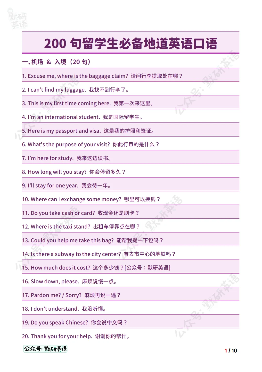 全覆盖机场、住宿、校园、食堂、购物、出行、就医、社交、办事、紧急情况十大场景,短句好记、老外日常原话,零基础也能直接开口用。