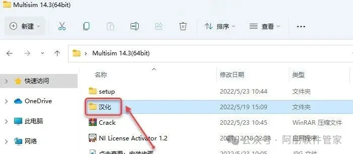 18.打开安装包解压后的【Multisim 14.3(64bit)】文件夹,双击打开【汉化】文件夹。
