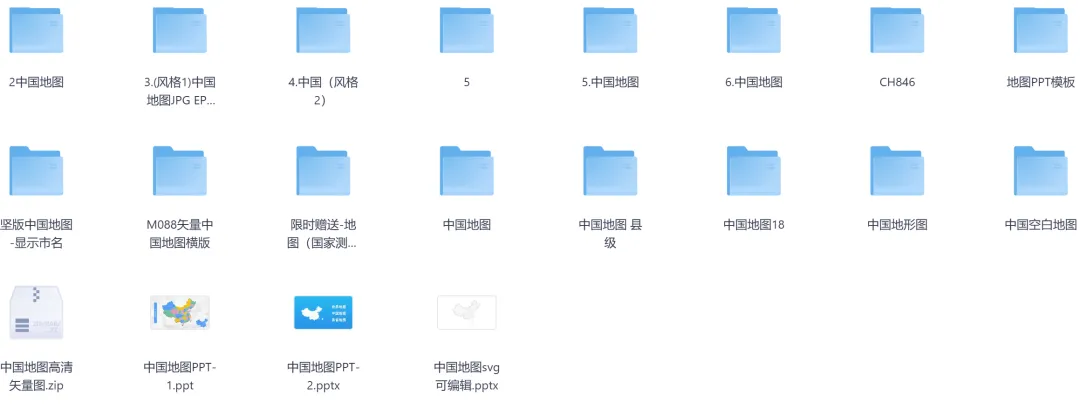 包含中国地图各省份全图高清版大图、所有地图照片可放大10000倍彩色电子图、地图PPT模板、横版竖版中国地图可编辑SVG等等!